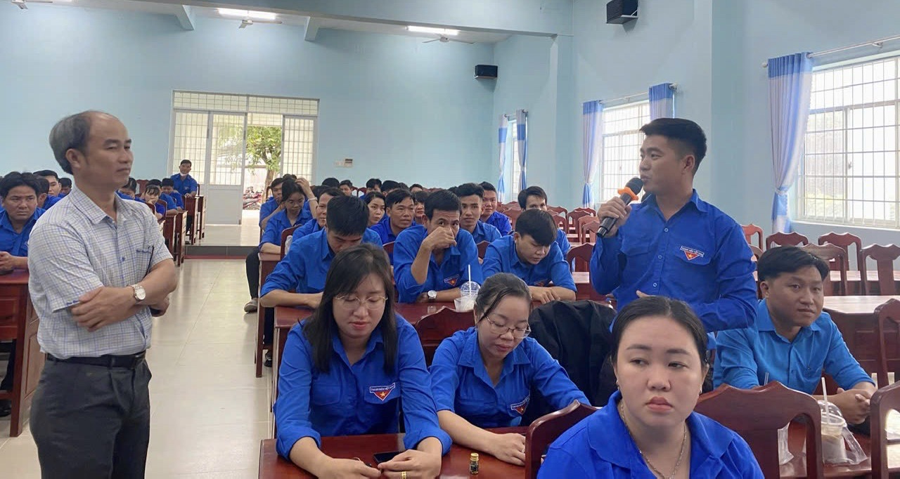 Đoàn viên, thanh niên trao đổi với báo cáo viên các nội dung về chương trình mỗi xã một sản phẩm