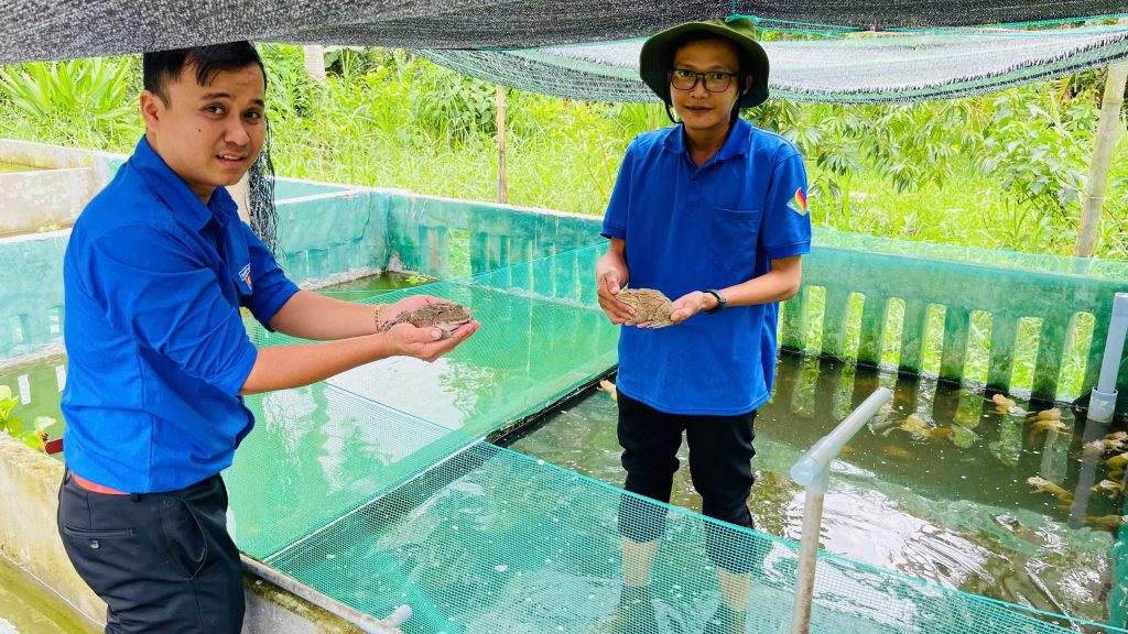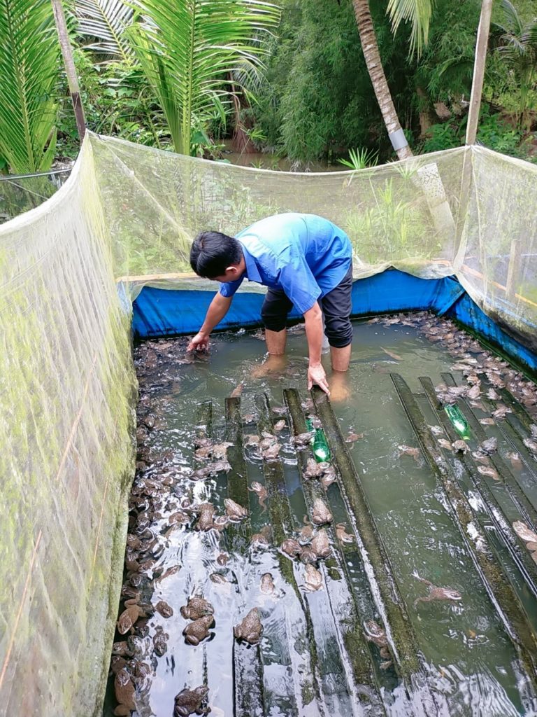 (Tổ hợp tác nuôi ếch thương phẩm: Năm 2024, mô hình thu hoạch được 4,4 tấn con giống với giá bán ra 45.000đ/kg. Sau khi trừ chi phí, lợi nhuận thu được khoảng 100 – 130 triệu đồng/1 năm. Tỉnh đoàn đã phối hợp Ngân hàng Chính sách xã hội giải ngân số tiền 90 triệu đồng từ nguồn vốn giải quyết việc làm để hỗ trợ cho đoàn viên, thanh niên duy trì và mở rộng quy mô)