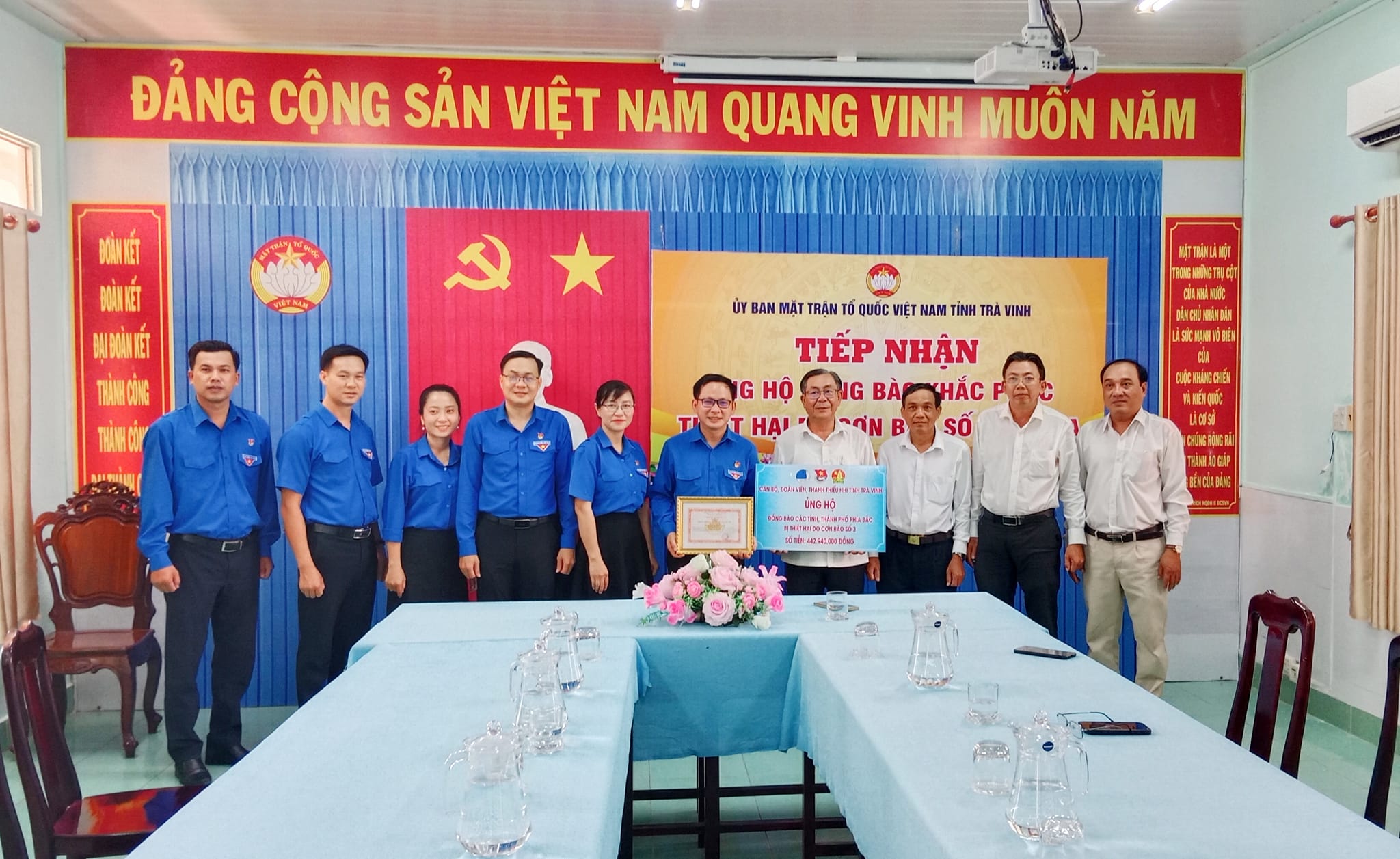 Thường trực Tỉnh đoàn, Ủy ban Hội tỉnh trao kinh phí ủng hộ khắc phục hậu quả do mưa lũ tại Ủy ban Mặt trận Tổ quốc Việt Nam tỉnh Trà Vinh