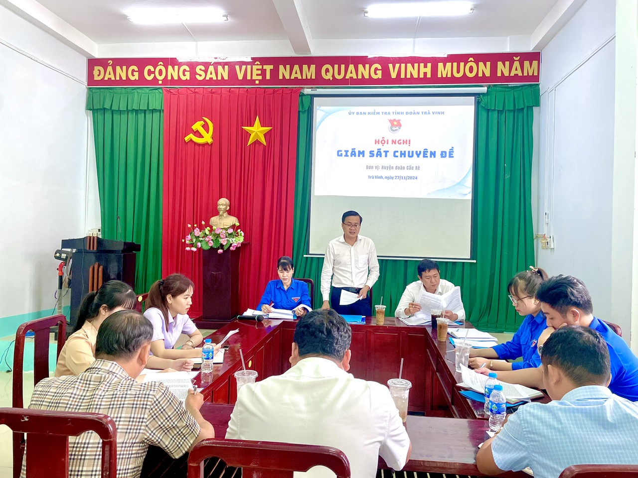 Thực hiện Kế hoạch số 04-KH/UBKTTĐ, ngày 11/11/2024 của Ủy ban Kiểm tra về “giám sát chuyên đề năm 2024”, Ủy ban kiểm tra Tỉnh đoàn giám sát 02 chuyên đề đối với Đoàn cấp huyện gồm: (1) việc thực hiện chức trách, nhiệm vụ theo Chỉ thị số 01-CT/TWĐTN ngày 17/5/2013 của Ban Thường vụ Trung ương Đoàn về “Tăng cường rèn luyện tác phong, thực hiện lề lối công tác của cán bộ Đoàn”; (2) Quy định số 03-QĐ/TĐTN-TCKT, ngày 18/6/2019 của Ban Chấp hành Tỉnh đoàn quy định trách nhiệm nêu gương của Ủy viên Ban Chấp hành Tỉnh đoàn, cán bộ chủ chốt, người đứng đầu tổ chức Đoàn trong hệ thống Đoàn TNCS Hồ Chí Minh tỉnh Trà Vinh. Từ ngày 27/11 – 29/11/2024, Ủy ban Kiểm tra Tỉnh đoàn tiến hành kiểm tra 04/11 đơn vị đoàn cấp huyện, trong đó giám sát trực tiếp đối với các đơn vị: huyện đoàn Tiểu Cần và huyện đoàn Cầu Kè; giám sát qua văn bản với các đơn vị huyện đoàn huyện đoàn Duyên Hải và huyện đoàn Cầu Ngang.