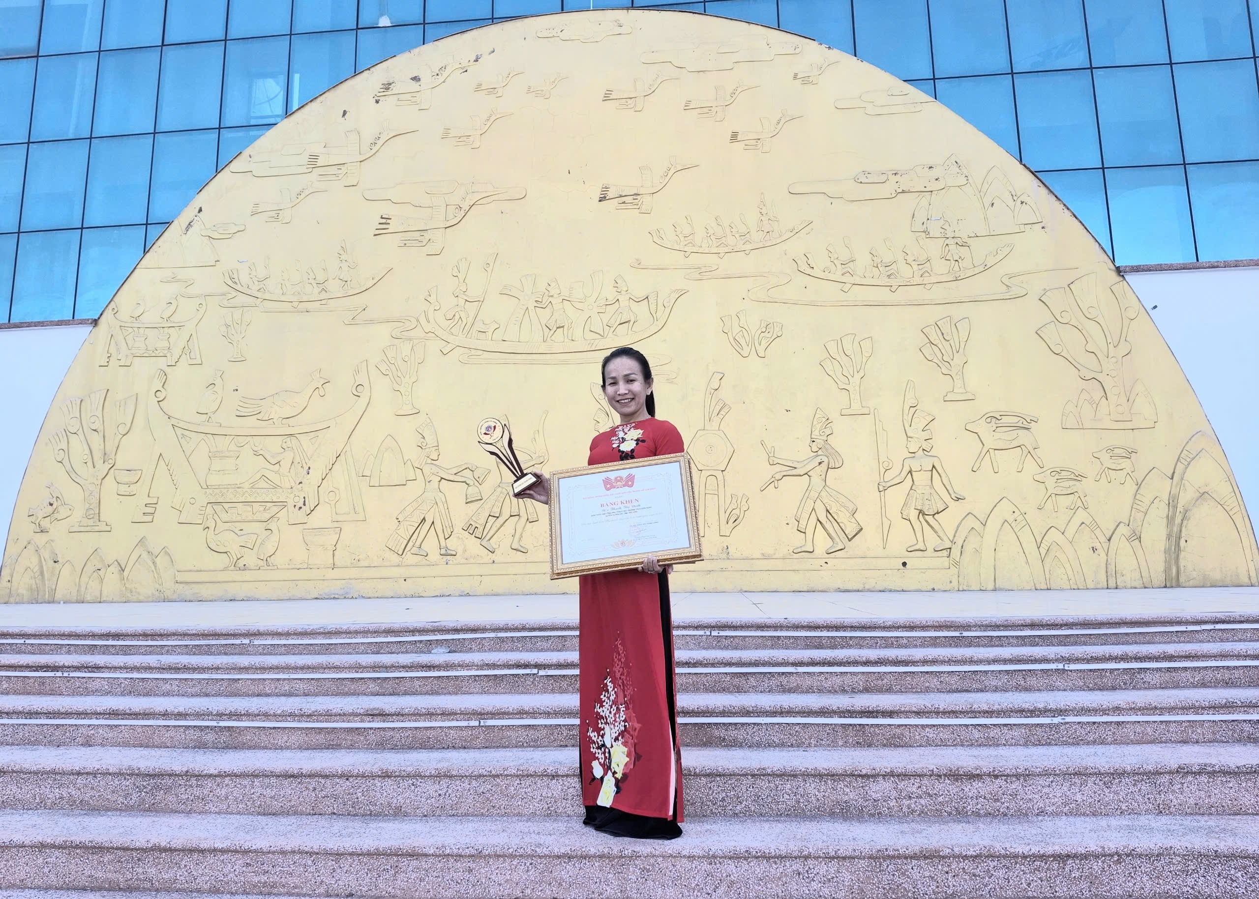 Thầy Tô Tăng Cường, Giáo viên làm Tổng phụ trách Đội Trường Tiểu học Nhị Trường A, huyện Cầu Ngang nhận giải thưởng “Cánh én hồng”