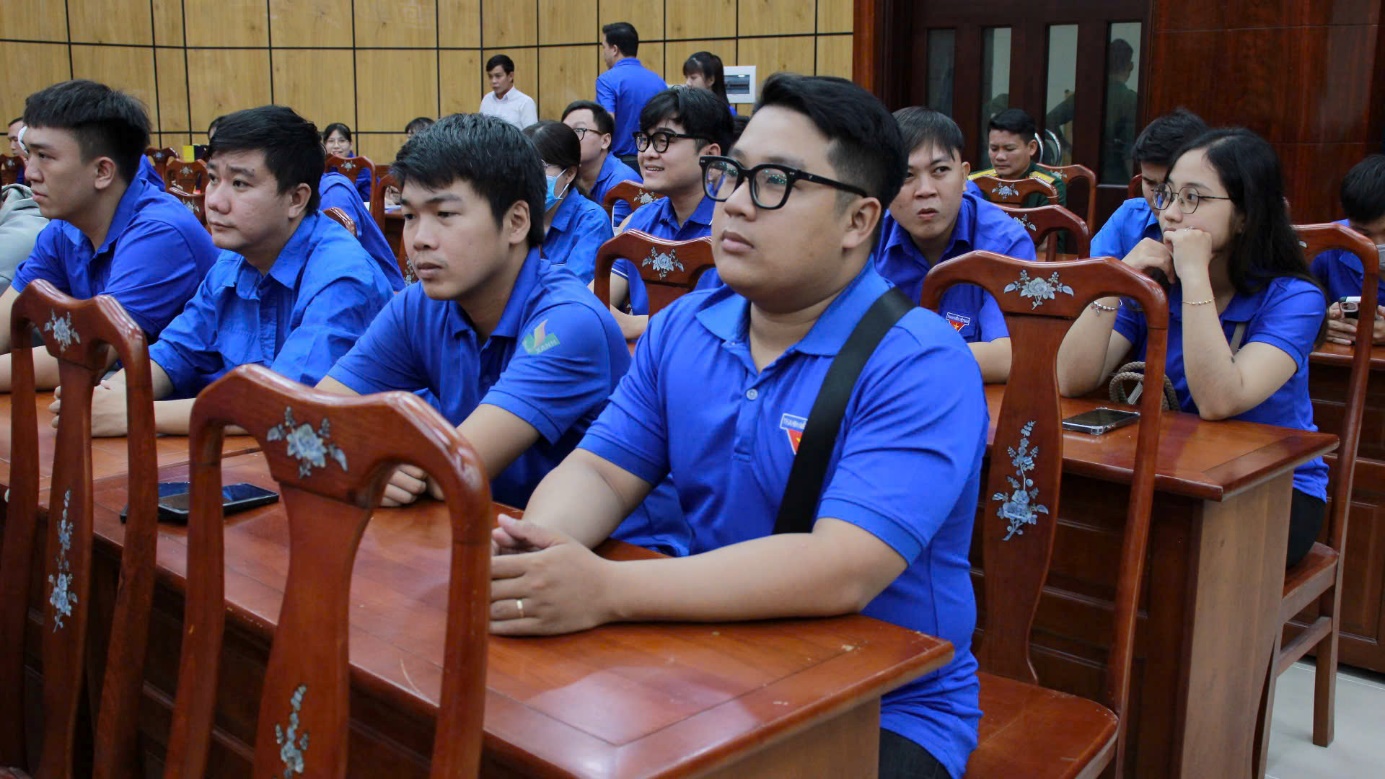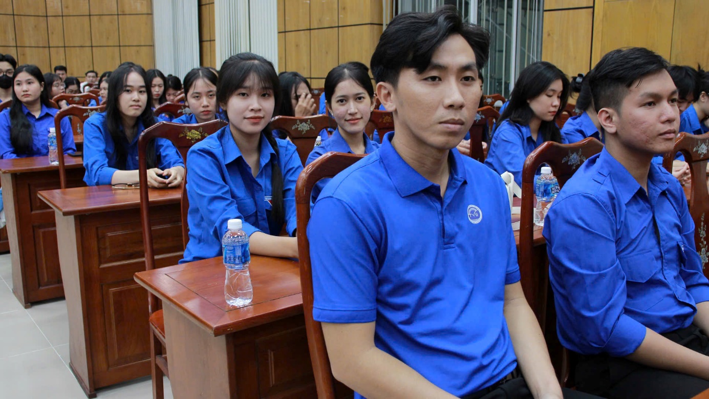 Đoàn viên, thanh niên tham gia thuyết trình với chủ đề “Tuổi trẻ Trà Vinh với nhiệm vụ tham gia xây dựng và bảo vệ Tổ quốc