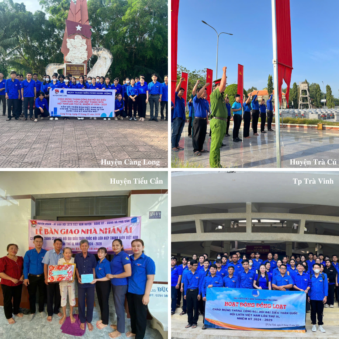 Cùng ngày, tại 9/9 huyện, thị xã, thành phố, Ban Thư ký Ủy ban Hội tỉnh đã chỉ đạo đồng loạt ra quân tổ chức các hoạt động chào mừng thành công Đại hội. Hơn 900 cán bộ, hội viên thanh niên náo nức tham gia hoạt động trên khắp các địa phương. Nhiều công trình ý nghĩa được triển khai, góp phần tô đậm hình ảnh tuổi trẻ Trà Vinh tích cực và tràn đầy nhiệt huyết.