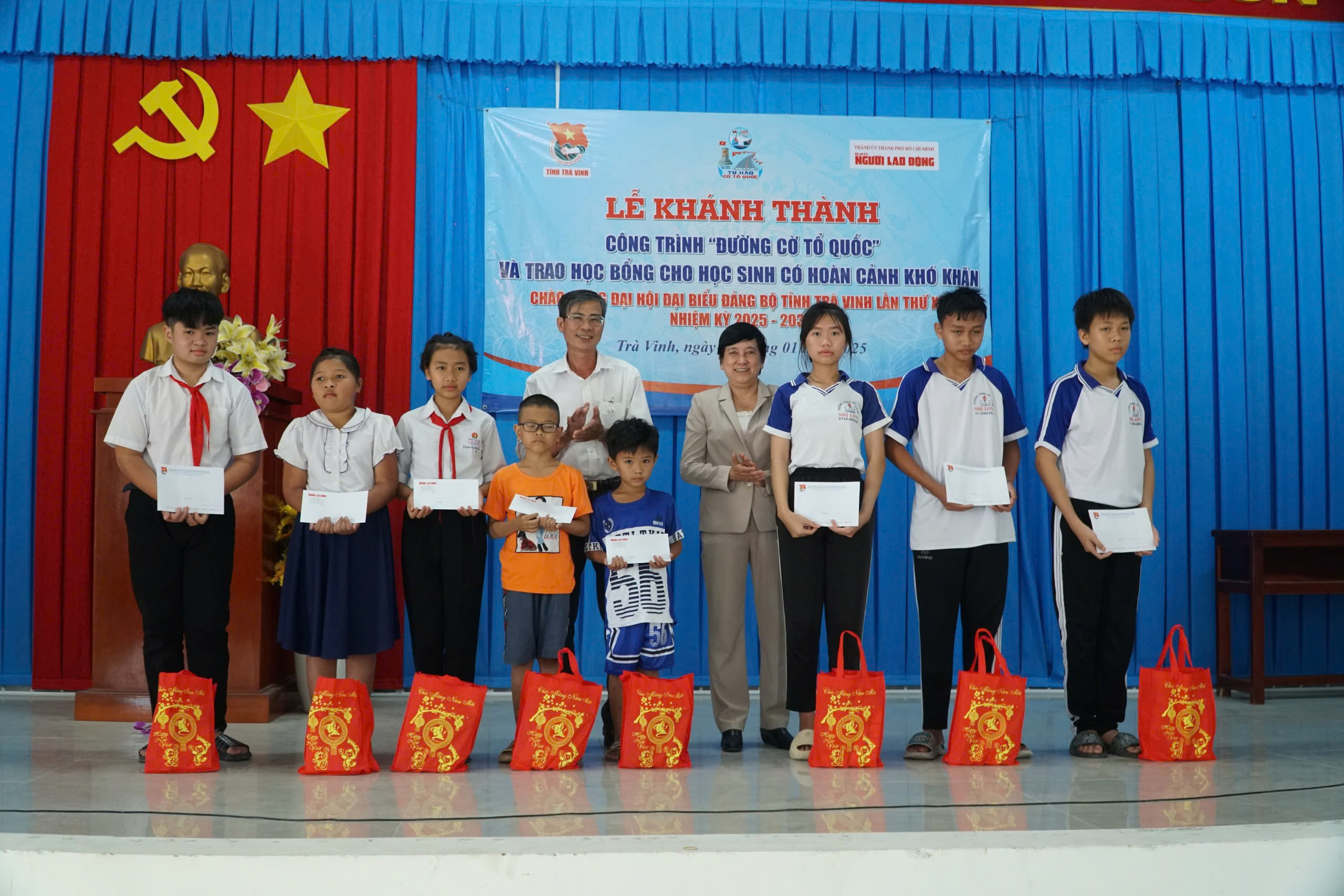 Sáng ngày 22/01, Ban Thường vụ Tỉnh đoàn Trà Vinh tổ chức Lễ Khánh thành công trình “Đường cờ Tổ quốc” và trao học bổng cho học sinh có hoàn cảnh khó khăn vươn lên học giỏi tại xã Nhị Long, huyện Càng Long.