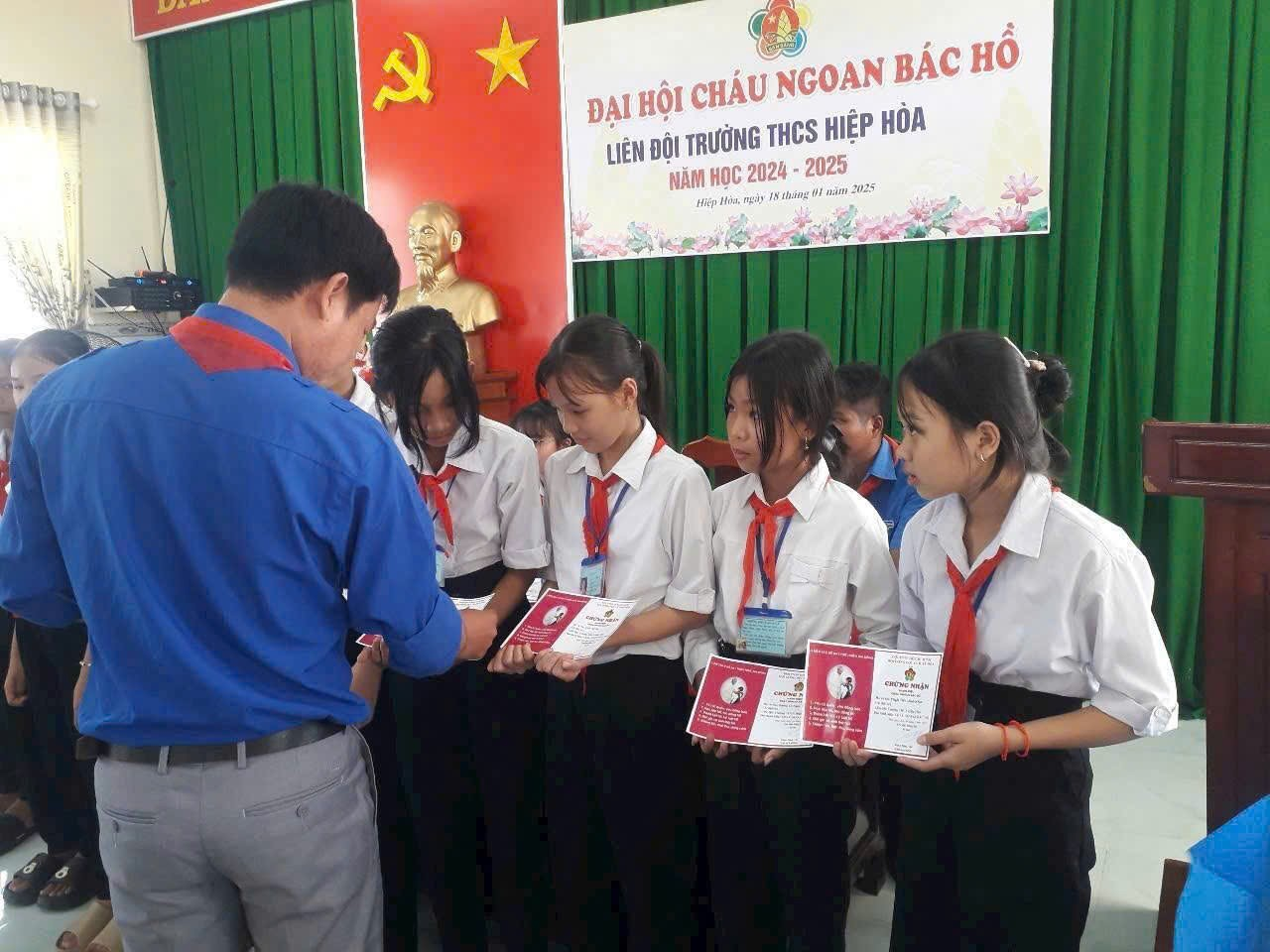 Đại hội Cháu ngoan Bác Hồ cấp Liên đội năm học 2024 – 2025 trên địa bàn huyện, thị xã, thành phố đã diễn ra nghiêm túc, sôi nổi, và rất ý nghĩa. Các hoạt động chào mừng trước Đại hội được triển khai với nhiều hình thức phong phú và đa dạng như: tổ chức tham quan, hành trình về địa chỉ đỏ, hát Quốc ca – Đội ca tại địa chỉ đỏ, các hoạt động tặng quà cho thiếu nhi có hoàn cảnh khó khăn…