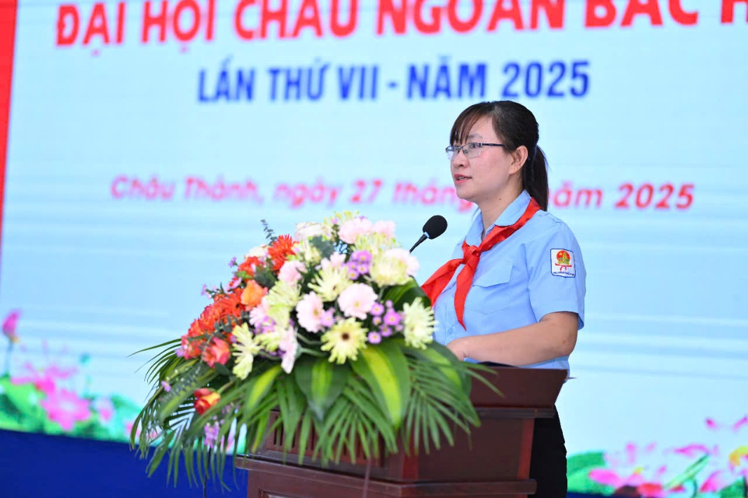 Phát biểu tại Đại hội, đồng chí Nguyễn Thị Cẩm Hương, Phó Bí thư Tỉnh Đoàn, Chủ tịch Hội đồng Đội tỉnh nhấn mạnh: Các em là những chủ nhân tương lai của đất nước, của tỉnh nhà, hôm nay các em đã vinh dự đạt danh hiệu là Cháu ngoan Bác Hồ, chị mong rằng các em sẽ tiếp tục phấn đấu học tập, rèn luyện, thực hiện tốt hơn nữa năm điều Bác Hồ dạy, gương mẫu đi đầu trong các hoạt động, phong trào thi đua của Đội Thiếu niên Tiền phong Hồ Chí Minh, xây dựng tổ chức Đội thật sự vững mạnh để mỗi mùa hoa Đội ta tự hào lớn lên cùng đất nước, để cùng với thiếu nhi huyện Châu Thành học tập, rèn luyện, phấn đấu để có nhiều em hơn nữa trở thành con ngoan, trò giỏi, đội viên tốt, cháu ngoan của Bác Hồ, mai này sẽ kế tục phát huy truyền thống cách mạng của các thế hệ cha anh xây dựng quê hương Trà Vinh cũng như đất nước ta ngày càng giàu đẹp, vẻ vang sánh vai với bạn bè năm châu và bảo vệ vững chắc tổ quốc Việt Nam như lời Bác Hồ kính yêu đã dạy: “các Vua Hùng đã có công dựng nước, Bác cháu ta phải cùng nhau giữ lấy nước”.