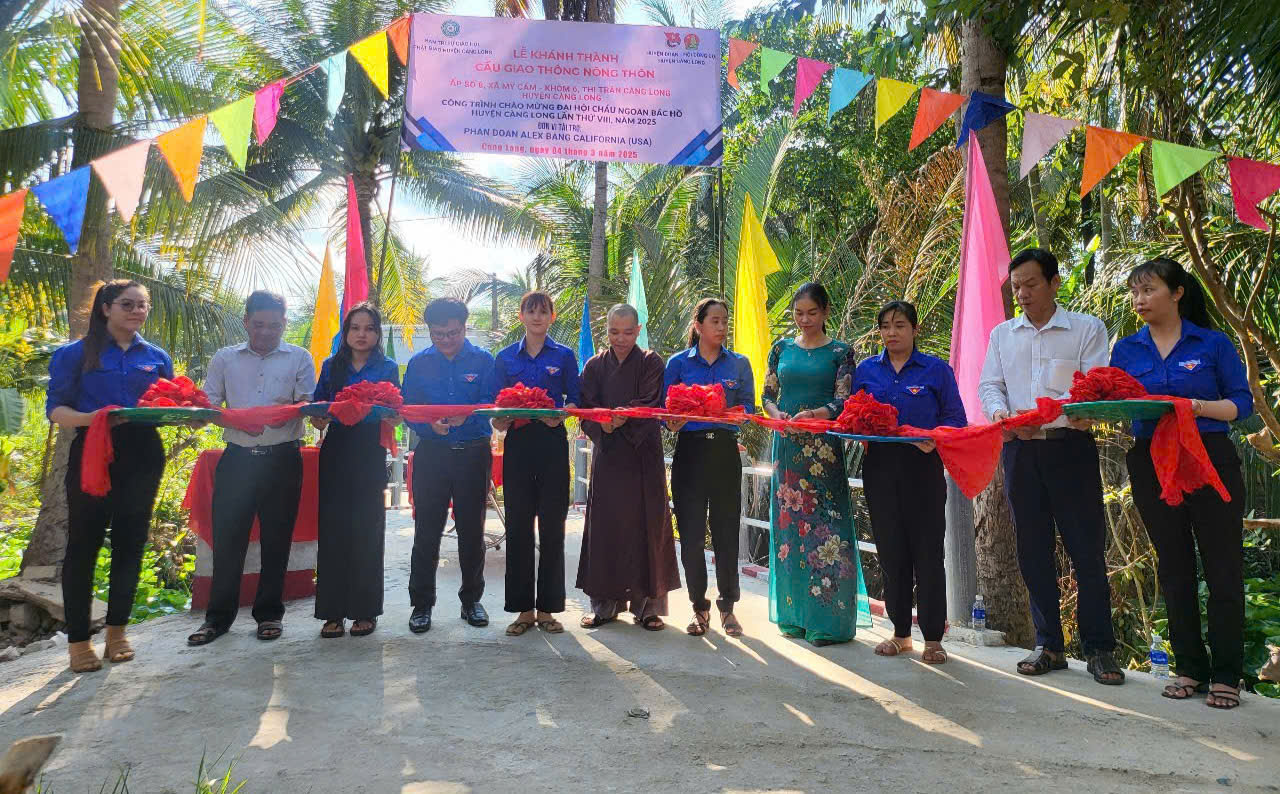 Cắt băng khánh thành công trình cầu giao thông nông thôn huyện Càng Long, công trình chào mừng Đại hội Cháu ngoan Bác Hồ huyện Càng Long lần thứ VIII năm 2025