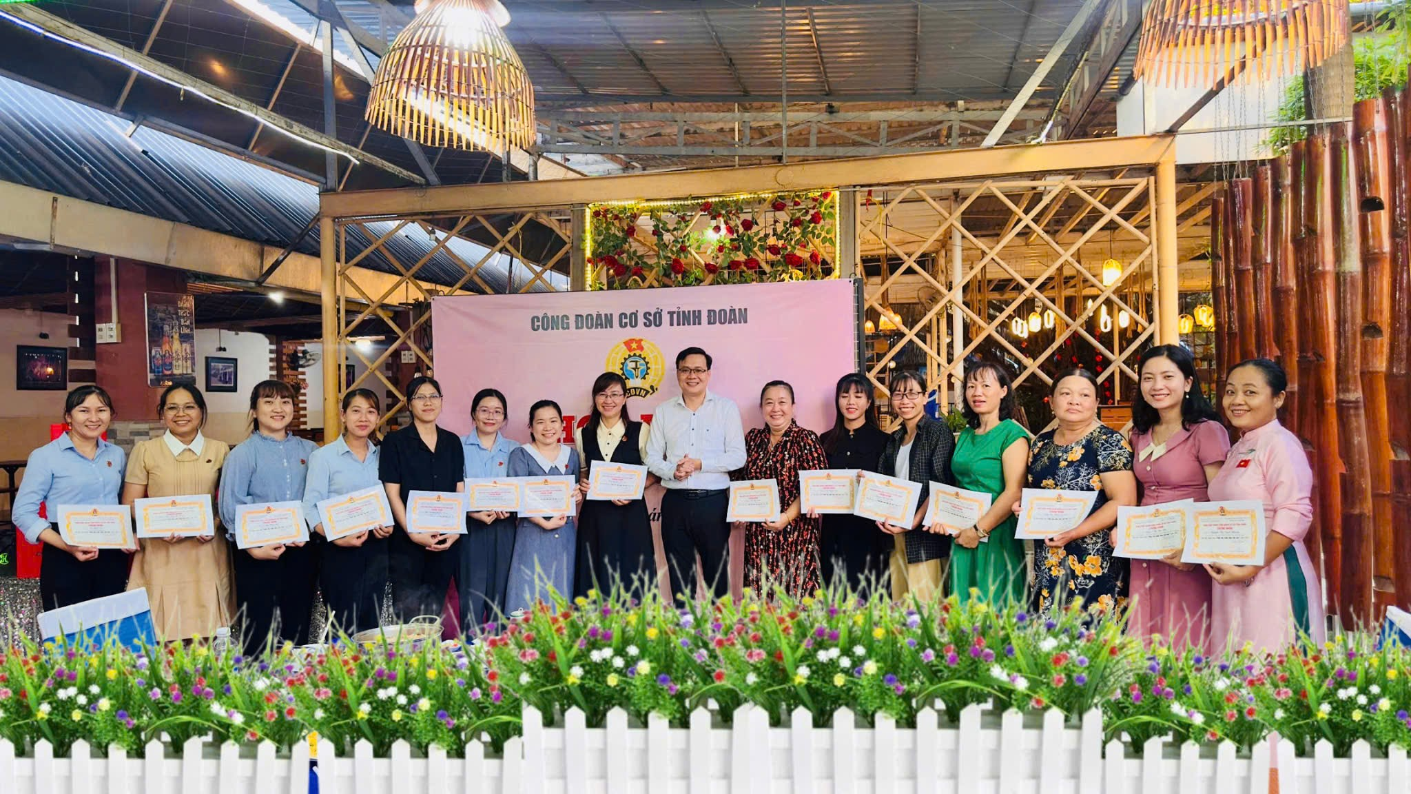 Nhân kỷ niệm 115 năm ngày Quốc tế phụ nữ 8/3 (8/3/1910-8/3/2025). Được sự thống nhất của Chi ủy Chi bộ cơ quan, ngày 06/3/2025 Công đoàn cơ sở Tỉnh đoàn tổ chức hoạt động kỷ niệm ngày Quốc tế phụ nữ 8/3 với những nội dung như: Tổ chức họp mặt, ôn lại truyền thống ngày quốc tế phụ nữ 8/3. Qua đó, kịp thời nắm bắt tâm tư nguyện vọng của nữ cán bộ, nhân viên cơ quan để tham mưu bố trí, sắp xếp lao động hợp lý, phù hợp với trình độ, chuyên môn nghiệp vụ và hoàn cảnh gia đình của chị em. Đến dự buổi họp mặt có các đồng chí Chi ủy chi bộ cơ quan, Thủ trưởng đơn vị, đoàn viên công đoàn cùng tham dự. Tại buổi họp mặt, đồng chí Trần Trí Cường, Ủy viên BCH Trung ương Đoàn, Bí thư Tỉnh đoàn chúc mừng đến tất cả nữ cơ quan luôn xinh đẹp, hạnh phúc, thành công.