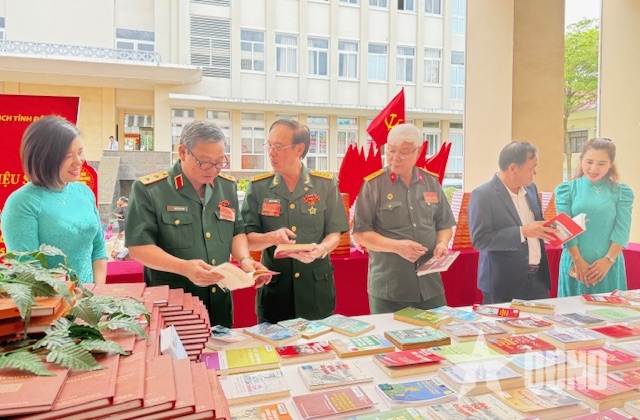 Các đại biểu tham quan khu trưng bày sách tại lễ kỷ niệm