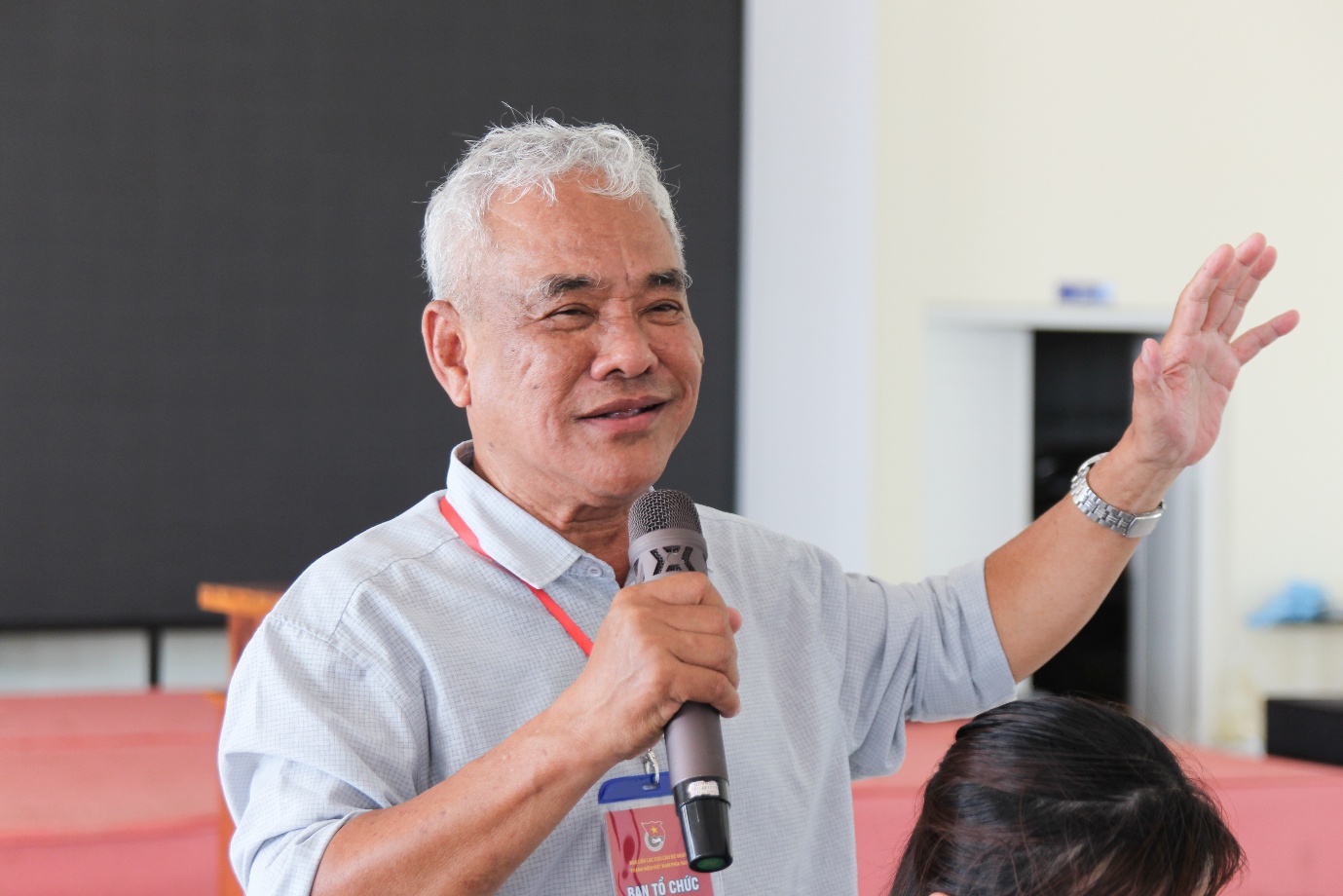 Tiến sĩ Lê Hồng Liêm, Trưởng Ban Liên lạc cựu cán bộ Đoàn Thanh niên Việt Nam khu vực phía Nam phát biểu tại buổi giao lưu