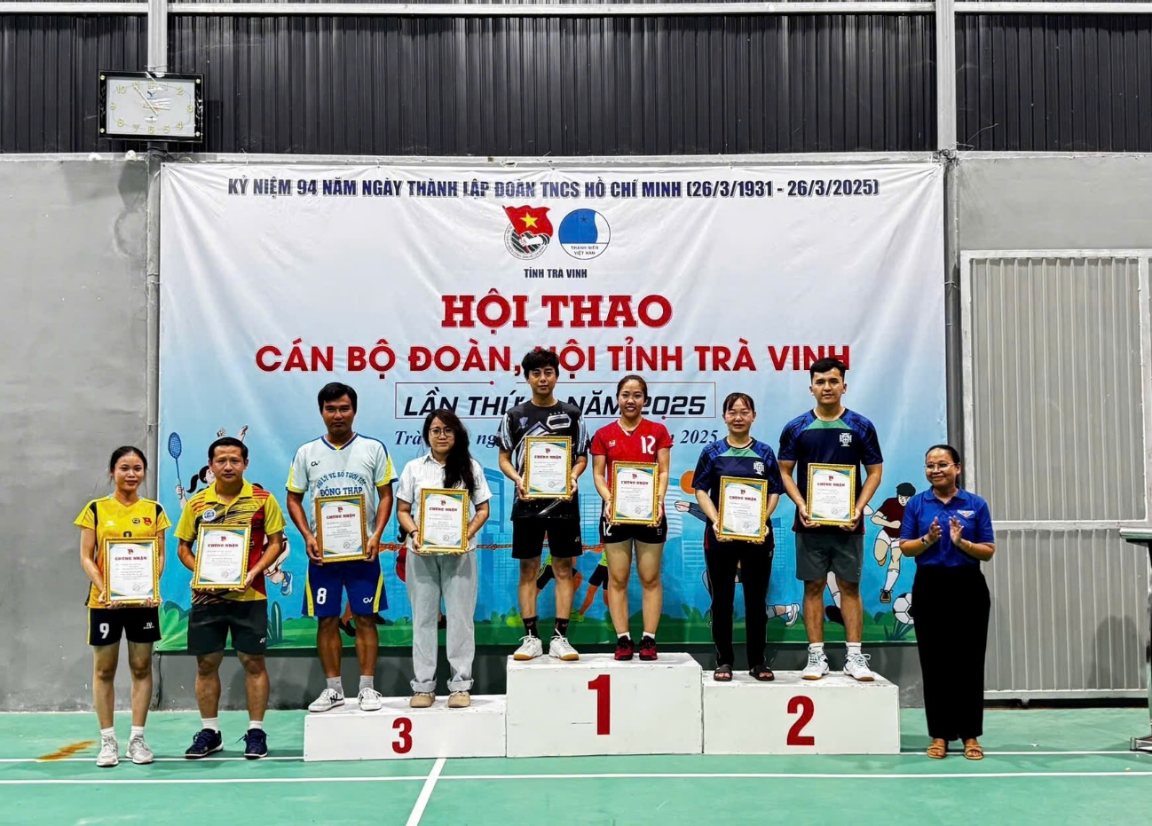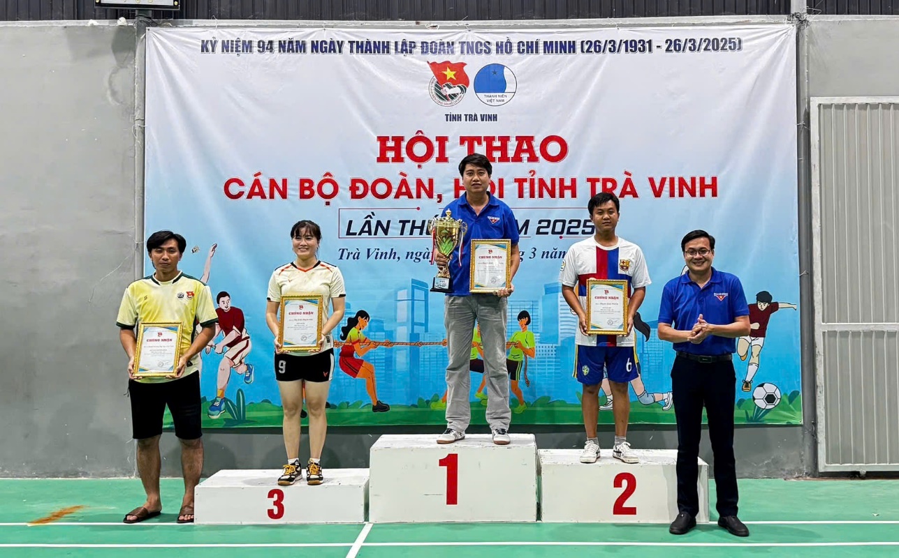 Môn Cầu Lông với 03 nội dung thi đấu, nội dung Đơn Nam, Ban Tổ chức đã trao giải Nhất cho vận động viên Phạm Tuấn Huy đơn vị Đoàn trường Đại học Trà Vinh, giải Nhì cho cho vận động viên Văn Đăng Khoa đơn vị Thành đoàn Trà Vinh, giải Ba cho cho vận động viên Kim Hoàng Phúc đơn vị Đoàn Khối các Cơ quan và doanh nghiệp tỉnh và giải Khuyến khích cho cho vận động viên Nguyễn Thành Hưng đơn vị Huyện đoàn Duyên Hải; nội dung Đơn Nữ, Ban Tổ chức đã trao giải Nhất cho vận động viên Nguyễn Thị Như Ý đơn vị Huyện đoàn Cầu Kè, giải Nhì cho vận động viên Phạm Như Ngọc đơn vị Huyện đoàn Châu Thành, giải Ba cho cho vận động viên Triệu Nguyễn Tố Đoan đơn vị Đoàn Khối các CQ&DN tỉnh và giải Khuyến khích cho cho vận động viên Phan Thị Thuý Kiều đơn vị Thị đoàn Duyên Hải; nội dung Đôi nam – nữ, Ban Tổ chức đã trao giải Nhất cho đôi vận động viên Nguyễn Thị Như Ý và Lâm Bửu Khôi đơn vị Huyện đoàn Cầu Kè, giải Nhì cho đôi vận động viên Bùi Bảo Duy và Lê Thị Hoài Thu đơn vị Huyện đoàn Châu Thành, giải Ba cho đôi vận động viên Trần Thanh Việt và Võ Trần Bảo Thư đơn vị Đoàn Khối các Cơ quan và doanh nghiệp tỉnh và giải Khuyến khích cho đôi vận động viên: Phạm Tuấn Huy và Trần Thuý Vy đơn vị Đoàn trường Đại học Trà Vinh.