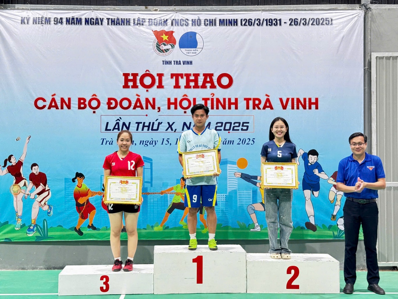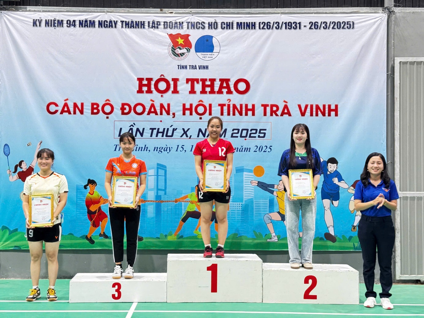 Môn Bóng chuyền hơi nữ: đơn vị huyện đoàn Trà Cú đoạt giải Nhất; đơn vị huyện đoàn Châu Thành đoạt giải Nhì; đơn vị huyện đoàn Tiểu Cần đoạt giải Ba và Huyện đoàn Càng Long đoạt giải Khuyến khích.