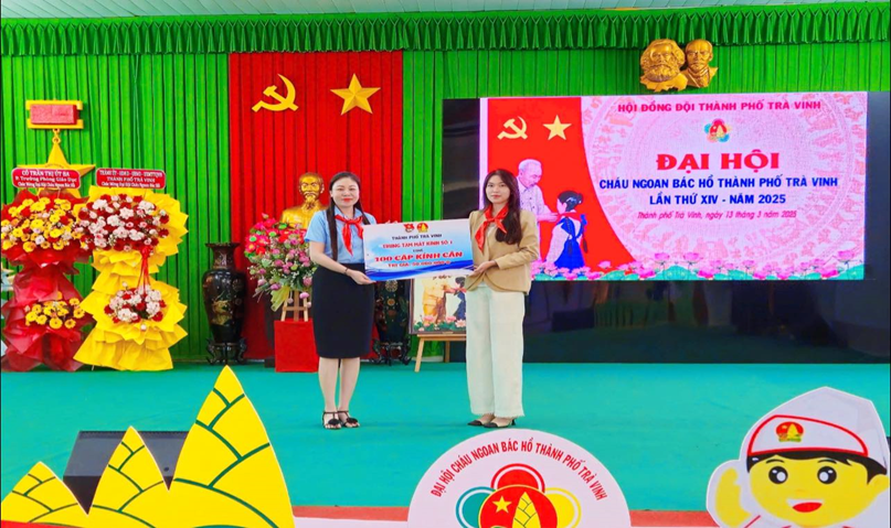 Nhân Đại hội, Thành đoàn – Hội đồng Đội thành phố đã trao tặng công trình măng non “Ngôi nhà khăn quàng đỏ” cho em Mỹ Linh – học sinh trường THCS Lý Tự Trọng, với số tiền 50 triệu đồng; Trung tâm Mắt kính số 01 trao tặng 100 cặp mắt kính với tổng trị giá 50 triệu đồng; Tập đoàn Nha khoa Tâm Đức Sài Gòn trao tặng 04 suất học bổng với tổng trị giá 02 triệu đồng; Khối ấn phẩm Báo khăn quàn đỏ trao 220 tờ báo Ngôi sao nhỏ; 220 thú nhồi bông và 05 balo học sinh với tổng số tiền 15 triệu đồng.