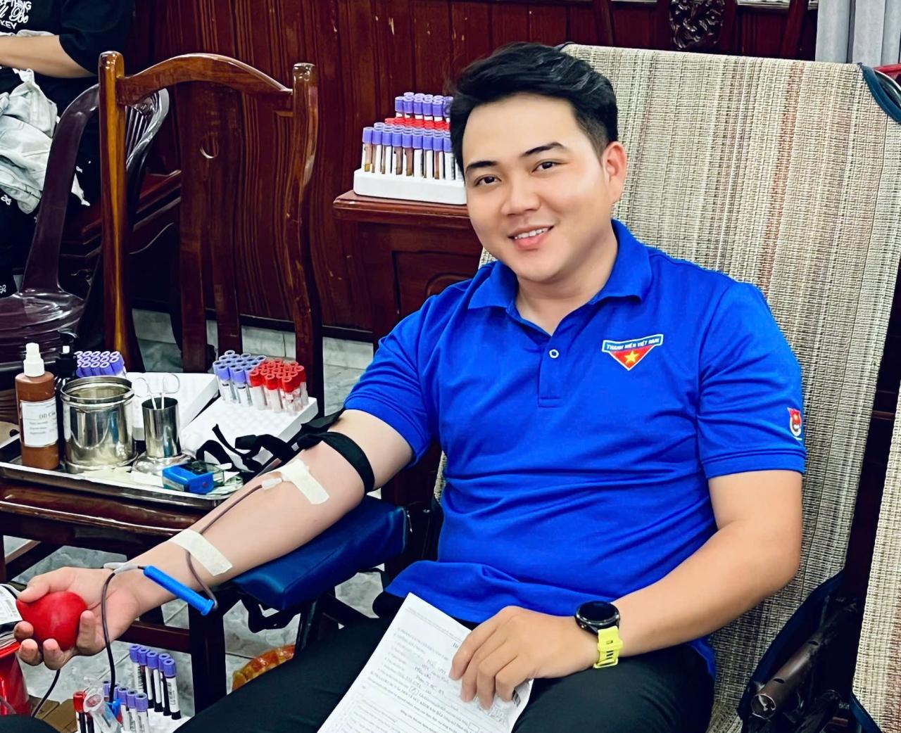 Đồng chí Ngô Văn Quí, Ủy viên Ban Chấp hành Đoàn phường 3 tham gia hiến máu tình nguyện