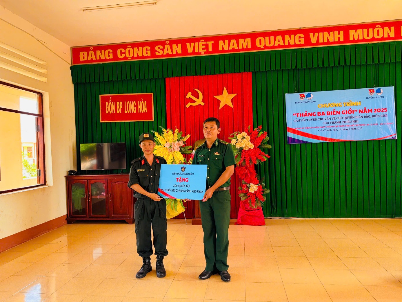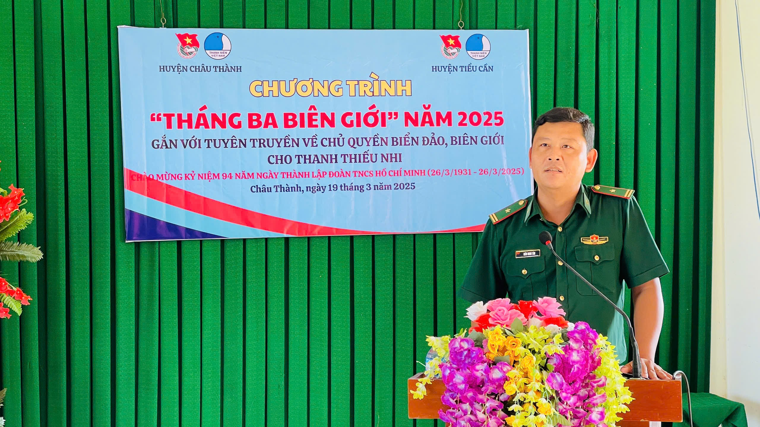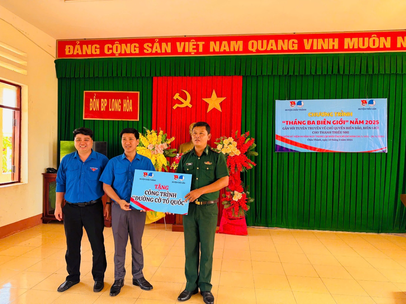 Thiết thực lập thành tích chào mừng kỷ niệm 94 năm Ngày thành lập Đoàn TNCS Hồ Chí Minh (26/3/1931-26/3/2025). Ngày 19/3/2025, Huyện đoàn – Ủy ban Hội LHTN huyện Châu Thành phối hợp Huyện đoàn – Ủy ban Hội LHTN huyện Tiểu Cần tổ chức Chương trình “Tháng Ba biên giới” năm 2025 gắn tuyên truyền về chủ quyền biển, đảo, biên giới cho thanh thiếu nhi tại Đồn Biên phòng Long Hòa.