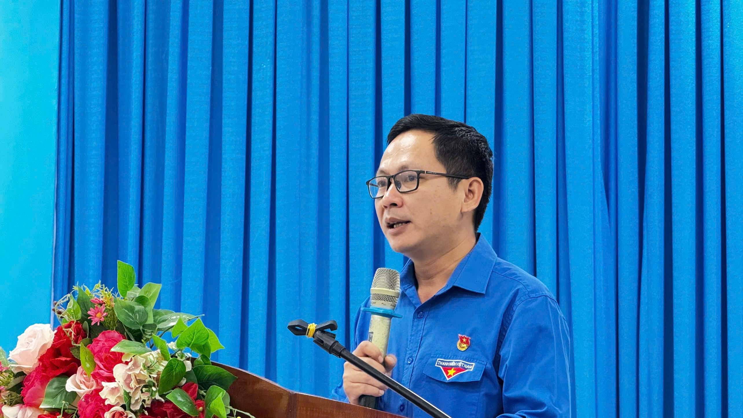 Đồng chí Trần Trí Cường, Ủy viên Ban Chấp hành Trung ương Đoàn, Bí thư Tỉnh đoàn phát biểu Khai mạc Hội thi