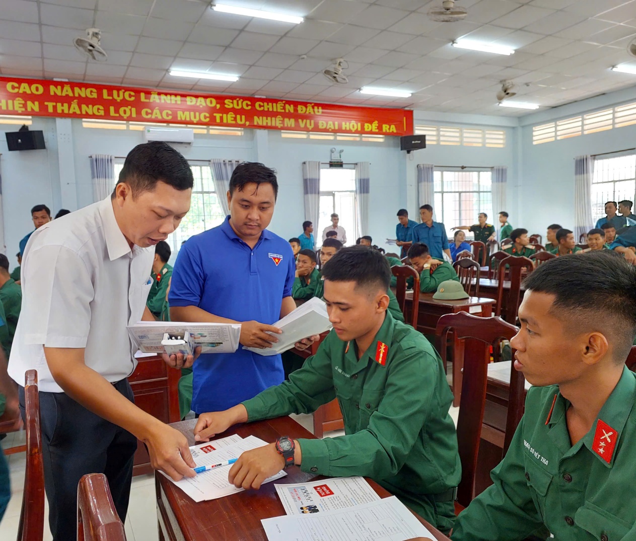 Hướng nghiệp, đào tạo nghề và việc làm luôn là các vấn đề quan trọng mà đoàn viên, thanh niên quan tâm, nhất là thanh niên hoàn thành nghĩa vụ quân sự và nghĩa vụ công an trở về địa phương. Nhằm phát huy vai trò của tổ chức Đoàn – Hội trong việc hỗ trợ, giúp đỡ đoàn viên, thanh niên dễ dàng tiếp cận thị trường lao động, lựa chọn nghề nghiệp phù hợp với khả năng, sở thích và điều kiện sau xuất ngũ. Ngày 22/3/2025, Ban Thường vụ Tỉnh đoàn, Hội LHTN Việt Nam tỉnh tổ chức Ngày hội Tư vấn, giới thiệu việc làm và tư vấn xuất khẩu lao động cho đoàn viên thanh niên hoàn thành nghĩa vụ quân sự, nghĩa vụ công an năm 2025 tại Hội trường Trường Đại học Trà Vinh. Tại Ngày hội, Tỉnh đoàn, Hội LHTN Việt Nam tỉnh phối hợp với Công ty CP Đầu tư Tài chính và Truyền thông quốc tế; Công ty Thương mại dịch vụ ENDLESS tư vấn, giới thiệu việc làm, xuất khẩu lao động ở nước ngoài cho hơn 200 đoàn viên thanh niên bao gồm thanh niên xuất ngũ vừa trở về địa phương.