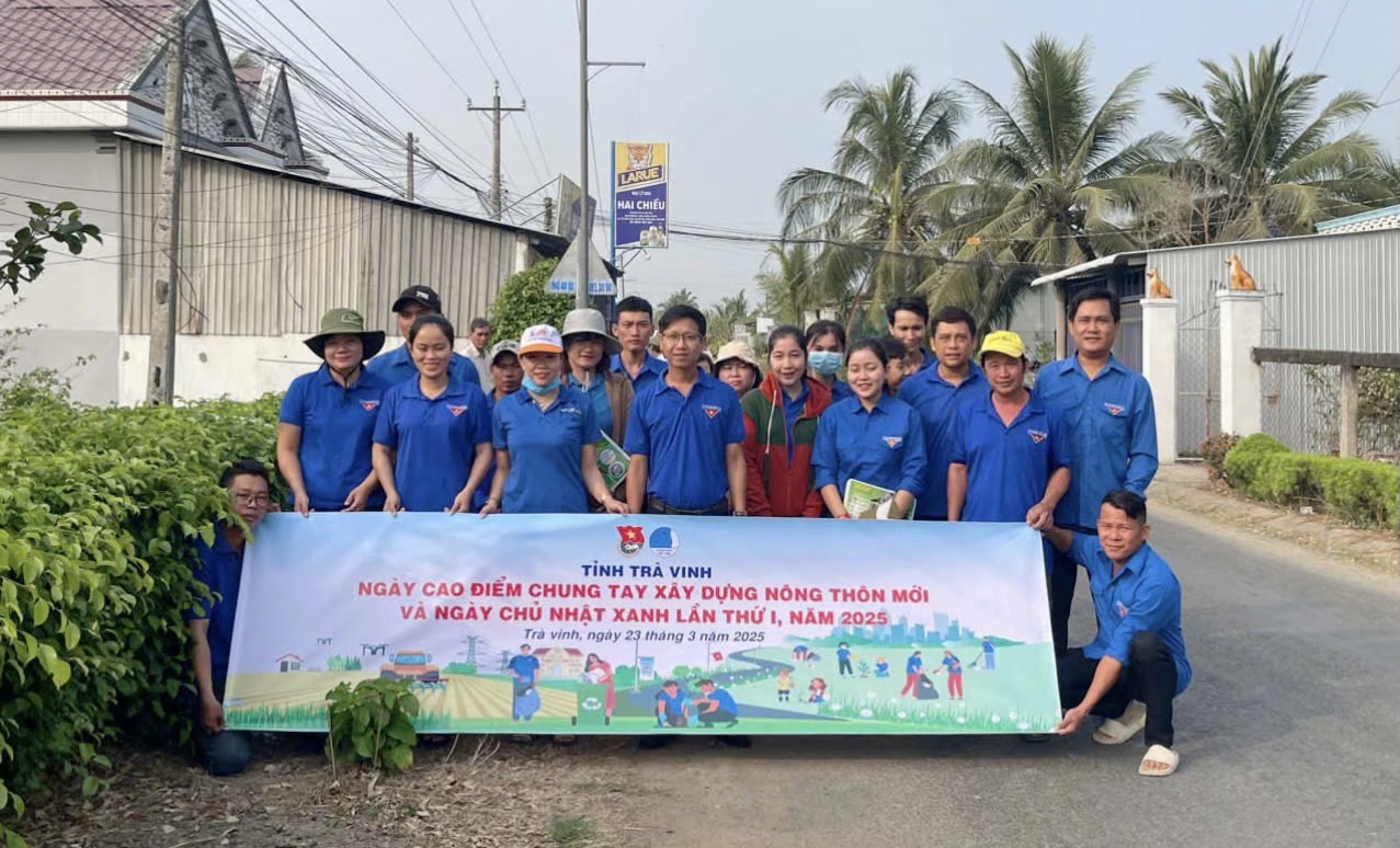 Sáng ngày 23/3/2025, Ban Thường vụ Tỉnh đoàn Trà vinh ra quân Ngày cao điểm “tình nguyện chung tay xây dựng nông thôn mới”“Ngày chủ nhật xanh” đợt 1, năm 2025 tại ấp Giồng Mới, xã Huyền Hội, huyện Càng Long.
