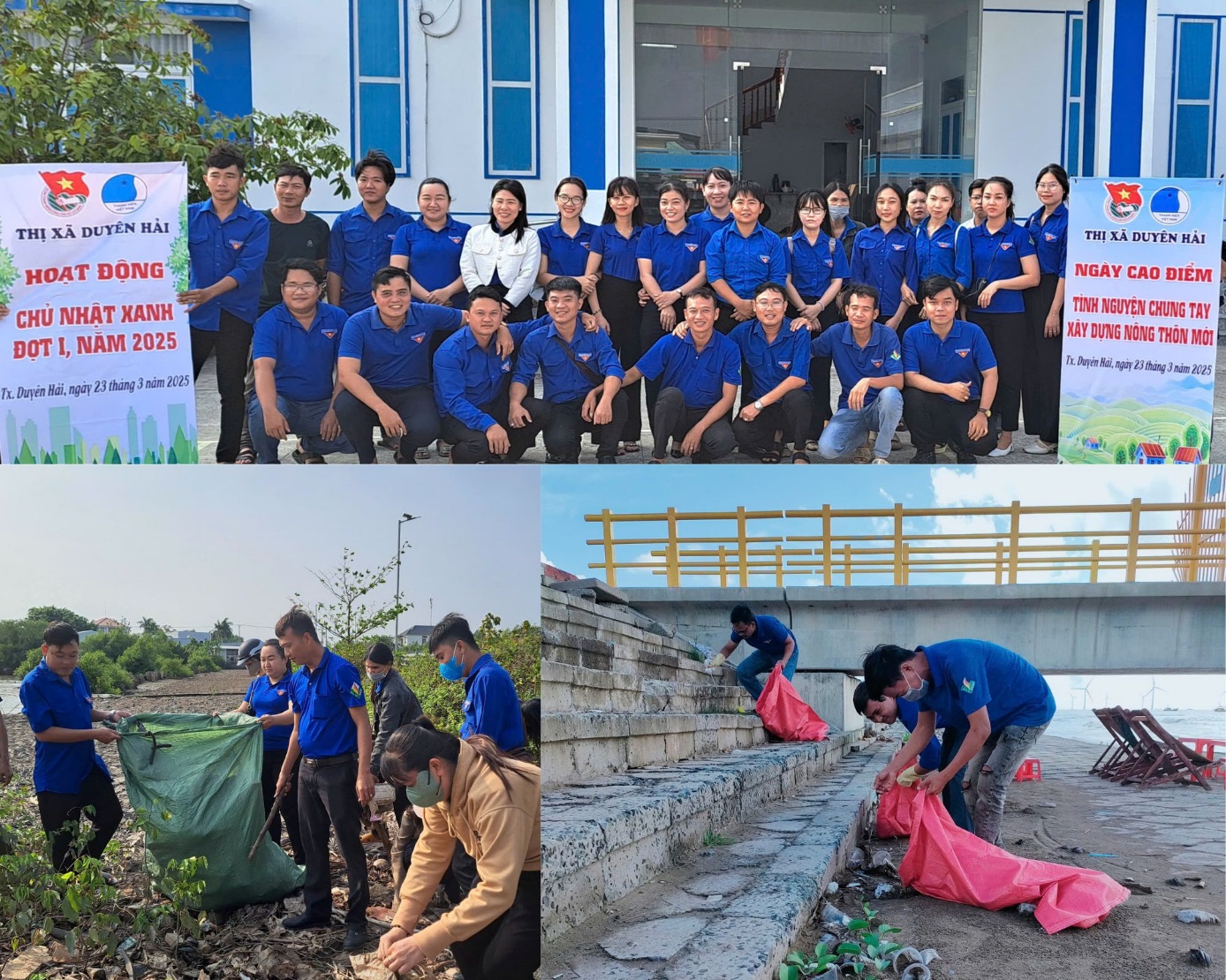 Cùng ngày, 100% các cơ sở Đoàn trong toàn tỉnh đã đồng loạt triển khai các hoạt động hưởng ứng Ngày cao điểm “Tình nguyện chung tay xây dựng nông thôn mới”“Ngày chủ nhật xanh” đợt 1, có hơn 3.500 đoàn viên, thanh niên trong toàn tỉnh tham gia. Các hoạt động trong Ngày cao điểm được triển khai thực hiện như: Tổ chức trồng 4.550 cây xanh ở các khu vực công cộng, khu dân cư; tổ chức thu gom hơn 2.7 tấn rác thải; phát quang và vệ sinh các tuyến đường sáng – xanh – sạch -đẹp, tuyến đường thanh niên tự quản với chiều dài 63.5km; ra mắt 03 mô hình hưởng ứng phong trào Phòng, chống rác thải nhựa:“Thu gom xử lý rác thải nhựa trên địa bàn dân cư”, phát 30 túi nhựa cho người dân, lắp 30 pano tuyên truyền và phát 200 tờ rơi về bảo vệ môi trường; thực hiện phong trào “Tuổi trẻ Trà Vinh chung tay bảo vệ môi trường, bảo vệ dòng sông quê hương” vớt lục bình, khơi thông dòng chảy tại các tuyến kênh, sông với chiều dài 7.5km; ngoài ra đoàn viên thanh niên thực hiện 02 công trình thắp sáng đường quê với chiều dài 3km, sửa chữa 2km đường giao thông nông thôn; xây dựng 01 cầu giao thông nông thôn; hướng dẫn cho 50 hộ dân sử dụng App thanh toán điện tử, sử dụng hệ thống hành chính công trực tuyến. Tổng kinh phí thực hiện các công trình, phần việc gần 200 triệu đồng.