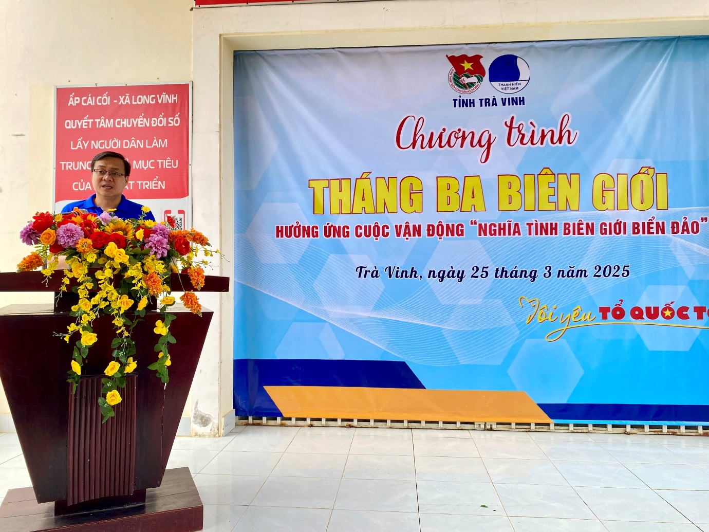 Hoà không khí sôi nổi của Tháng Thanh niên, hướng tới kỷ niệm 94 năm Ngày thành lập Đoàn TNCS Hồ Chí Minh (26/3/1931 – 26/3/2025) và 66 năm Ngày truyền thống Bộ đội Biên phòng Việt Nam (03/3/1959 – 03/3/2025), đồng thời khơi dậy tinh thần yêu nước, lòng tự hào dân tộc và trách nhiệm của thế hệ trẻ trong công cuộc bảo vệ chủ quyền biên giới thiêng liêng của Tổ quốc. Ngày 25/3, Tỉnh Đoàn, Hội LHTN Việt Nam tỉnh tổ chức Chương trình “Tháng Ba biên giới” năm 2025 tại Ấp Cái Cối, xã Long Vĩnh, huyện Duyên Hải, tỉnh Trà Vinh.