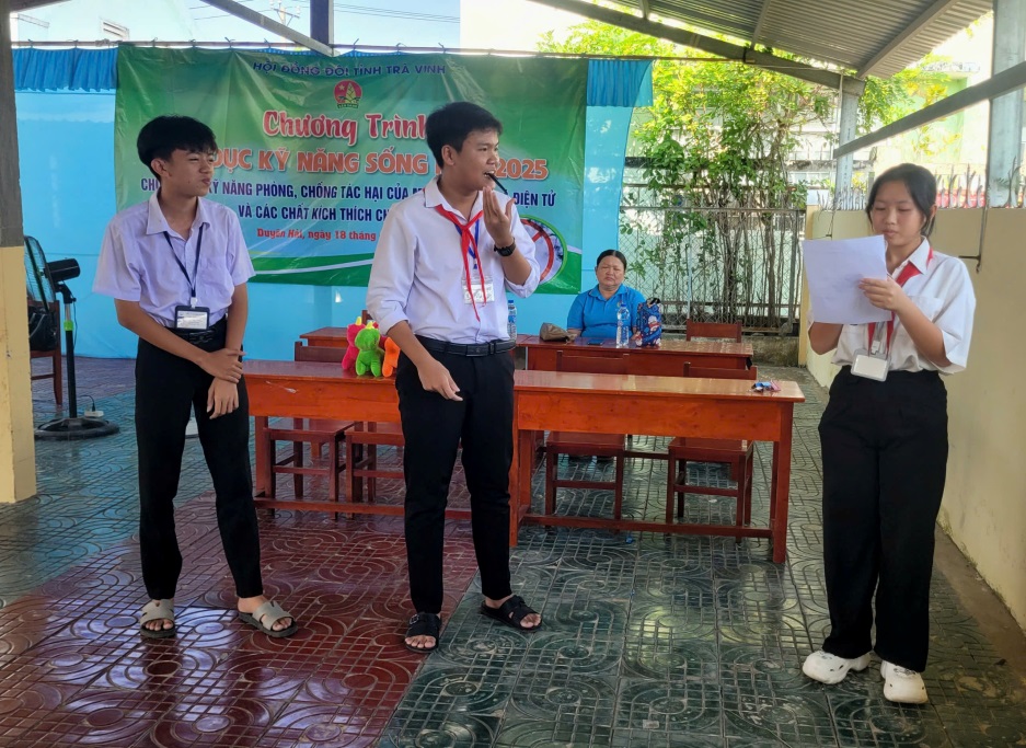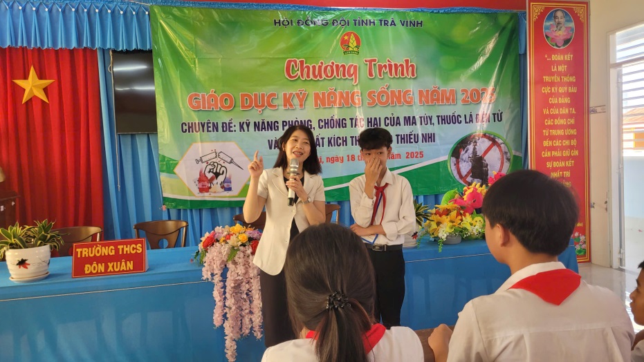 Ngày 18/4/2025, Hội đồng Đội, Trung tâm Sinh hoạt Thanh thiếu nhi tỉnh Trà Vinh đã tổ chức chương trình Giáo dục kỹ năng sống tại trường THCS Đôn Xuân và trường THCS Thị trấn Long Thành, huyện Duyên Hải với chuyên đề: “Kỹ năng phòng, chống tác hại của ma túy, thuốc lá điện tử và các chất kích thích dành cho thiếu nhi” có 200 em học sinh tham gia.