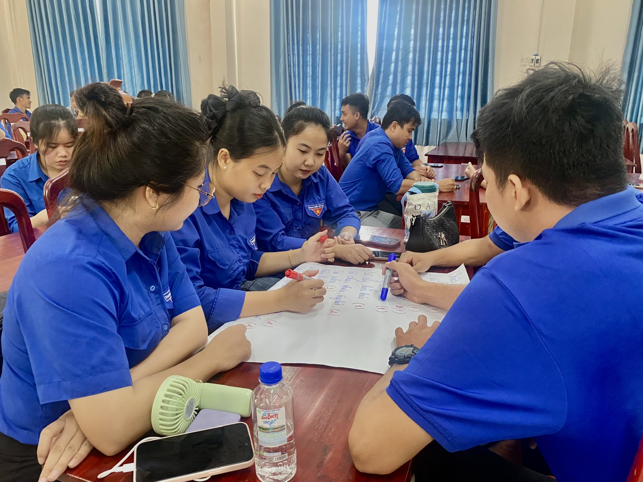 Đoàn viên, thanh niên huyện Châu Thành thảo luận các biện pháp xử lý rác thải