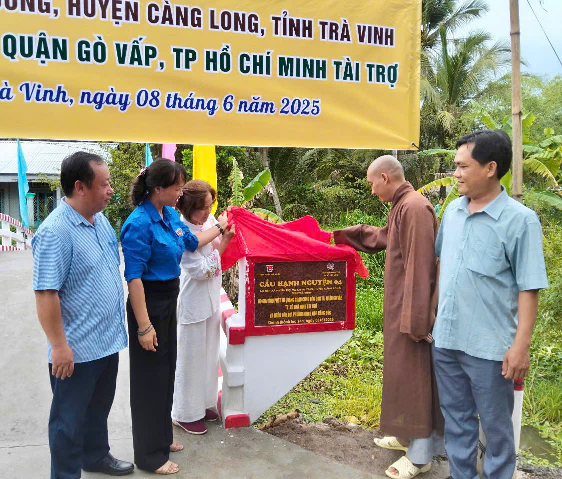 Sáng ngày 08/6/2025, tại xã Huyền Hội, huyện Càng Long, tỉnh Trà Vinh, Ban Thường vụ Tỉnh đoàn phối hợp với Câu lạc bộ Hạnh Nguyện TP. Hồ Chí Minh và Đảng ủy – UBND xã Huyền Hội tổ chức Lễ khánh thành công trình Cầu Hạnh Nguyện số 04, một công trình dân sinh thiết thực mang đậm dấu ấn nghĩa tình, trách nhiệm với cộng đồng.