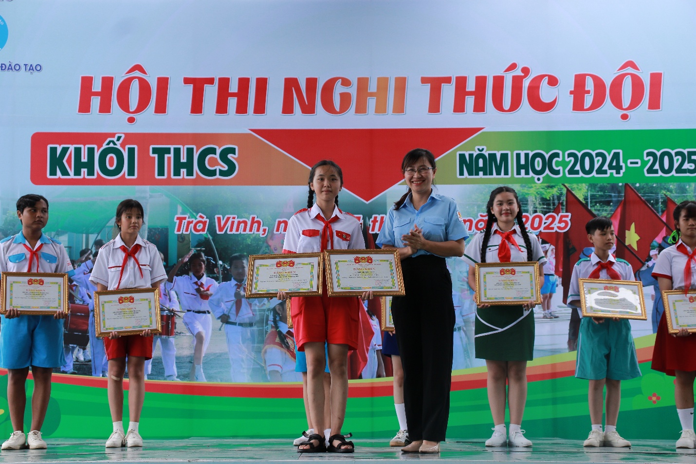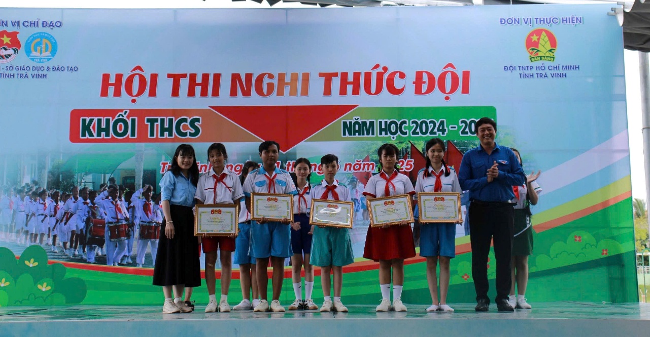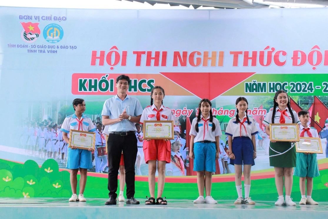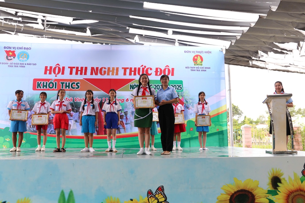 Hội thi Nghi thức đội cấp tỉnh năm nay dành cho khối Trung học cơ sở. Các đội thi lần lượt trải qua các phần thi gồm: Lễ diễu hành, lễ duyệt đội, thi bốn đội hình nghi thức (chữ U, hàng ngang, hàng dọc, vòng tròn), đội hình sáng tạo và chỉ huy Đội. Qua 01 ngày diễn ra sôi nổi với sự nổ lực hết mình của các đội thi, tại lễ Bế mạc, Ban Tổ chức trao Bằng khen của Ban Chấp hành Tỉnh đoàn cho Liên đội Trường THCS Minh Trí, thành phố Trà Vinh đã xuất sắc đạt giải Nhất; trao giải Nhì cho Liên đội Trường THCS Mỹ Cẩm, huyện Càng Long; trao giải Ba cho Liên đội Trường PT DTNT THCS huyện Châu Thành, huyện Châu Thành và Liên đội Trường THCS Thị trấn Long Thành, huyện Duyên Hải; 06 giải khuyến khích cho các đơn vị: Liên đội Trường THCS Phong Phú, huyện Cầu Kè; Liên đội Trường THCS Thị trấn Tiểu Cần, huyện Tiểu Cần; Liên đội Trường THCS Trường Thọ, huyện Cầu Ngang; Liên đội Trường PT DTNT THCS và THPT huyện Trà Cú; Liên đội Trường THCS Nguyễn Đáng, thị xã Duyên Hải; Giải Chỉ huy Đội xuẩt sắc thuộc về em Đặng Thị Phương Lam, lớp 8/2, Trường THCS Mỹ Cẩm, huyện Càng Long.