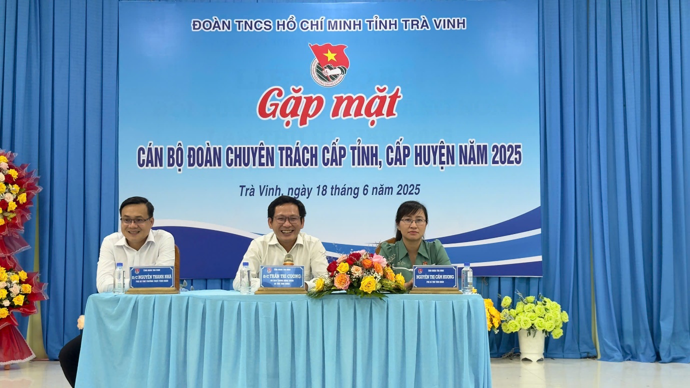 Nhằm tri ân và tôn vinh những đóng góp to lớn, đầy tâm huyết của đội ngũ cán bộ Đoàn chuyên trách cấp tỉnh, cấp huyện trong công tác Đoàn và phong trào thanh thiếu nhi thời gian qua, ngày 18/6/2025, tại Hội trường Trung tâm sinh hoạt Thanh thiếu nhi tỉnh, Ban Thường vụ Tỉnh đoàn Trà Vinh tổ chức chương trình gặp mặt cán bộ Đoàn cấp tỉnh, cấp huyện. Tham dự chương trình có đồng chí Trần Trí Cường, Ủy viên Ban Chấp hành Trung ương Đoàn, Bí thư Tỉnh đoàn, Đồng chí Nguyễn Thanh Nhã Phó Bí thư Thường trực Tỉnh đoàn, đồng chí Nguyễn Thị Cẩm Hương, Phó Bí thư Tỉnh đoàn, các đồng chí Ủy viên Ban Thường vụ Tỉnh đoàn, cán bộ, công chức các ban chuyên môn Tỉnh đoàn, cán bộ đoàn chuyên trách các huyện, thị thành đoàn, đoàn trực thuộc.