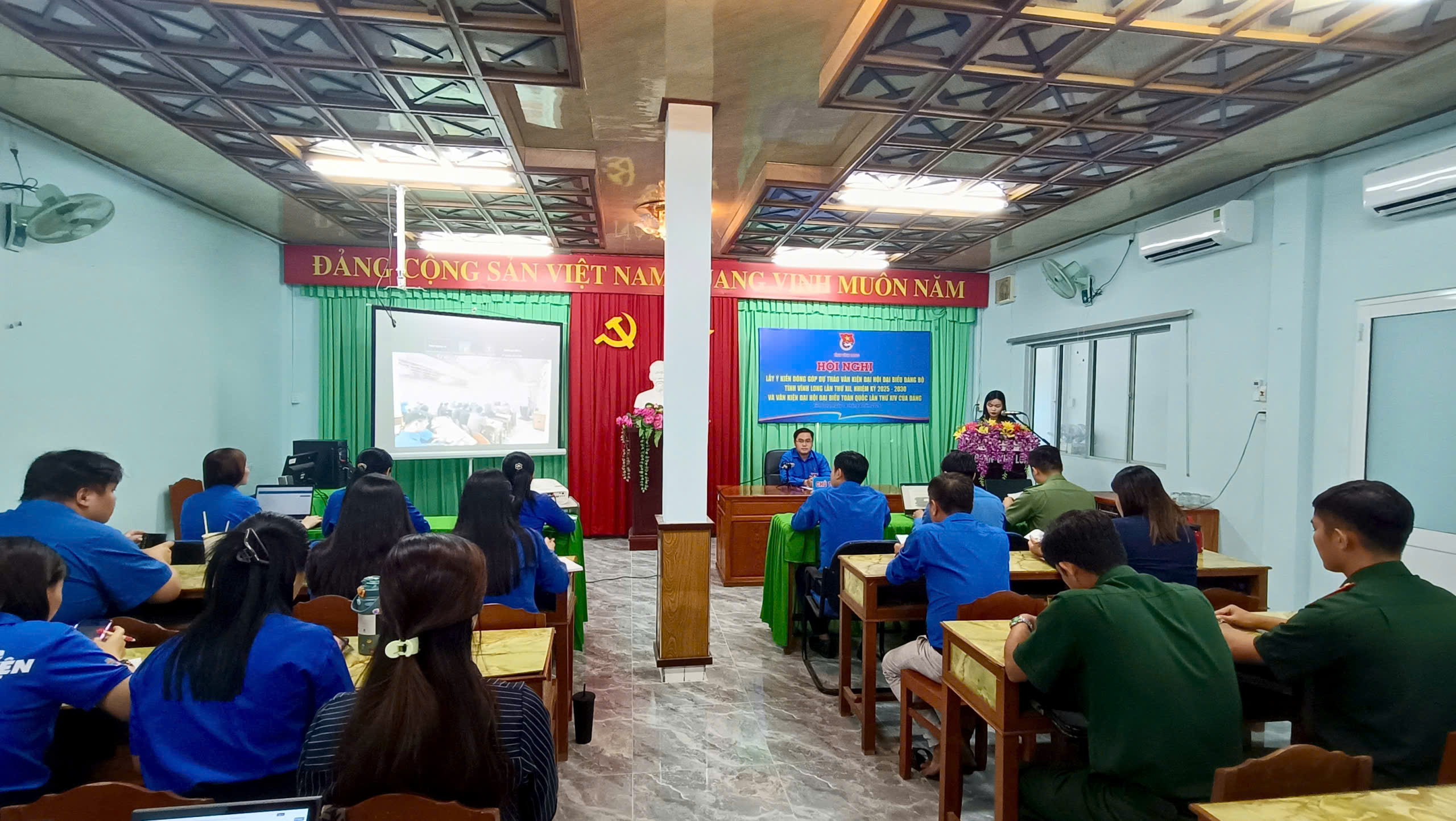 Sáng ngày 14/8/2025, tại Hội trường cơ quan Tỉnh đoàn, Ban Thường vụ Tỉnh đoàn Vĩnh Long tổ chức Hội nghị lấy ý kiến đóng góp dự thảo Văn kiện Đại hội đại biểu Đảng bộ tỉnh Vĩnh Long lần thứ XII, nhiệm kỳ 2025 – 2030 và Văn kiện Đại hội đại biểu toàn quốc lần thứ XIV của Đảng. Hội nghị được tổ chức theo hình thức trực tiếp kết hợp trực tuyến với sự tham dự của Ban Thường vụ, Ban Chấp hành Tỉnh đoàn; lãnh đạo, viên chức các đơn vị trực thuộc; cán bộ Ban Công tác Đoàn và Thanh thiếu nhi, cơ quan Ủy ban MTTQ Việt Nam tỉnh; cùng các đại biểu tại các điểm cầu cơ sở.