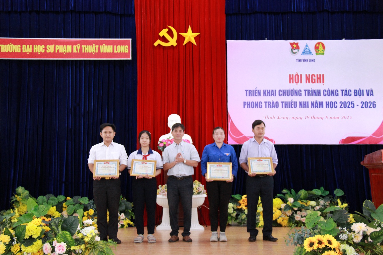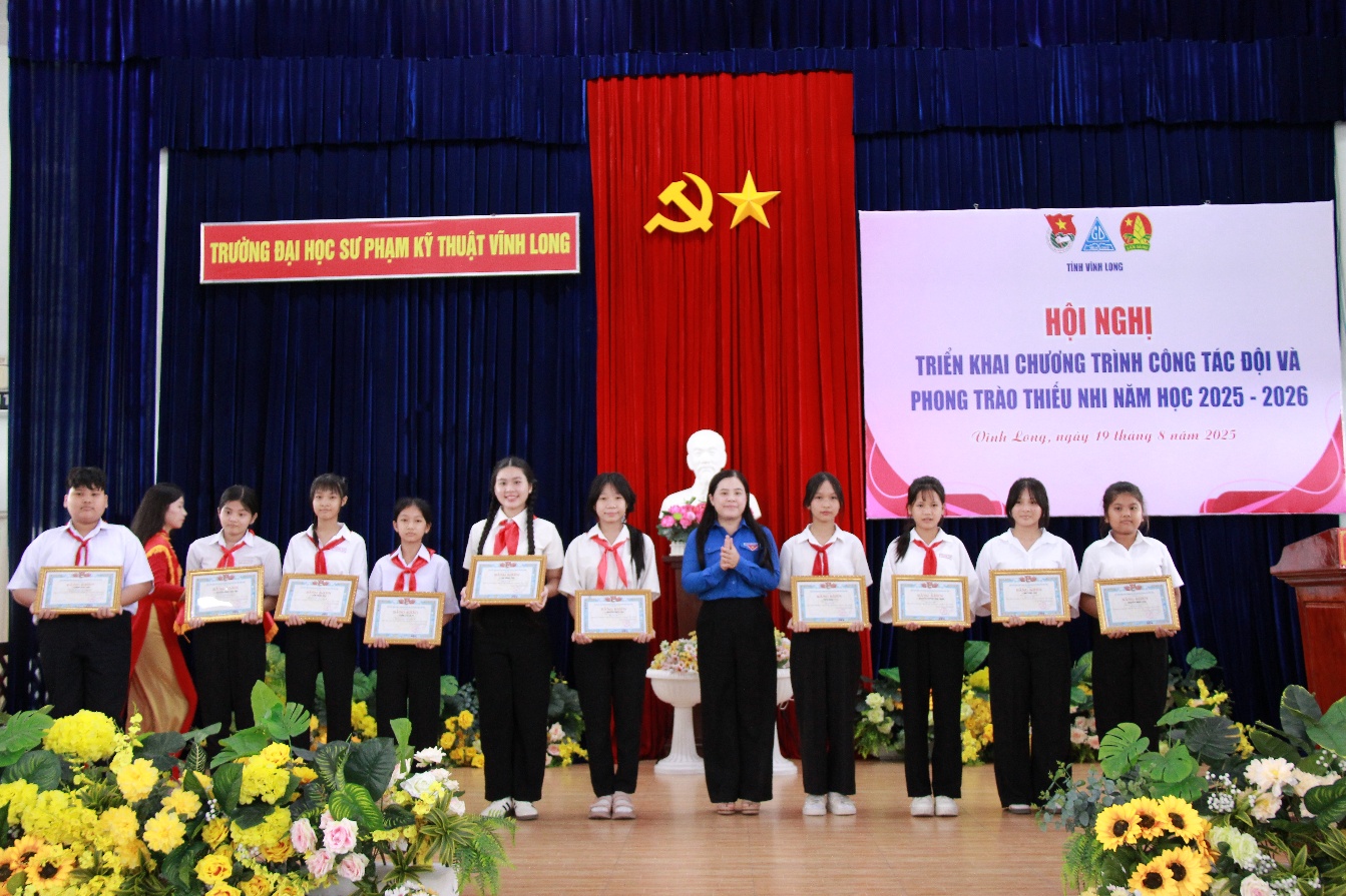 Sáng ngày 19/8/2025, trong khuôn khổ chương trình Hội nghị triển khai chương trình công tác Đội và phong trào thiếu nhi năm học 2025 – 2026, Ban Thường vụ Tỉnh đoàn tổ chức trao giải các cuộc thi dành cho thiếu nhi trong dịp hè và cuộc thi thiếu nhi hát Quốc ca tại các địa chỉ đỏ năm 2025 tại Trường Đại học Sư phạm Kỹ thuật Vĩnh Long.