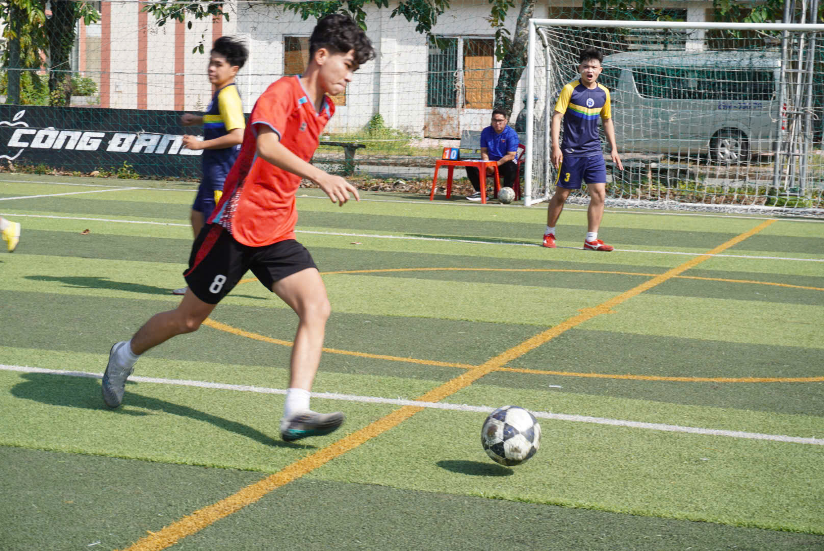 Ảnh 4: Đồng chí Phan Thanh Trẻ – Phó Bí thư Tỉnh đoàn trao giải Nhất môn bóng đá nam cho đơn vị Trường Đại học Xây dựng miền Tây