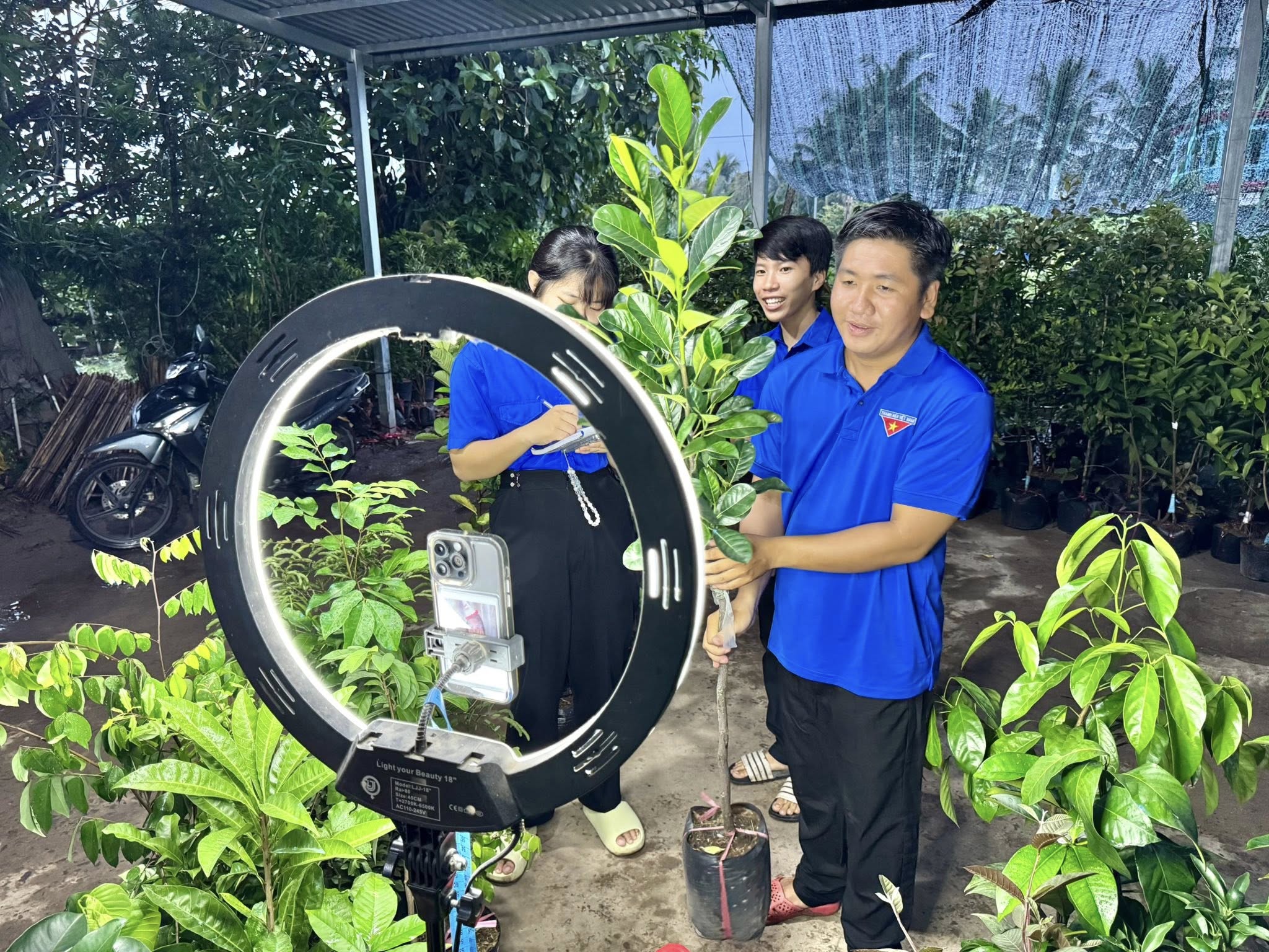 Xuất phát từ lợi thế cây giống hoa kiểng tại địa phương, đồng thời nắm bắt xu hướng chuyển đổi số; đồng chí đã mạnh dạn áp dụng hình thức livestream giới thiệu, tư vấn trực tiếp các loại cây giống đến người tiêu dùng. Thông qua các buổi phát sóng trực tuyến, không chỉ bán sản phẩm mà còn chia sẻ kiến thức chăm sóc cây trồng, tạo sự tin tưởng và gắn kết với khách hàng. Nhờ đó, mô hình từng bước phát triển ổn định, mang lại nguồn thu nhập đáng kể và tạo việc làm cho một số thanh niên tại địa phương.