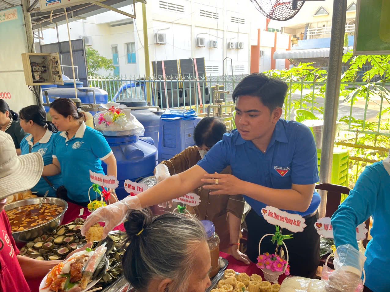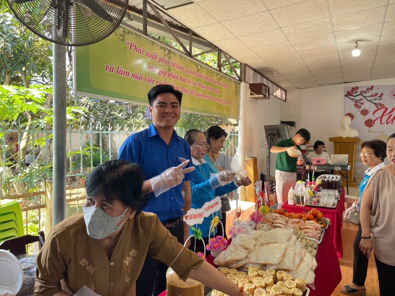 Từ sáng sớm, các đoàn viên, thanh niên đã có mặt để chuẩn bị, sắp xếp khu vực phục vụ, hỗ trợ người dân và học sinh đến tham dự chương trình. Hình ảnh những bạn trẻ ân cần trao từng suất ăn, nụ cười rạng rỡ của các em nhỏ và người lao động khi nhận phần buffet đã tạo nên bầu không khí ấm áp, nghĩa tình trong những ngày cận Tết.