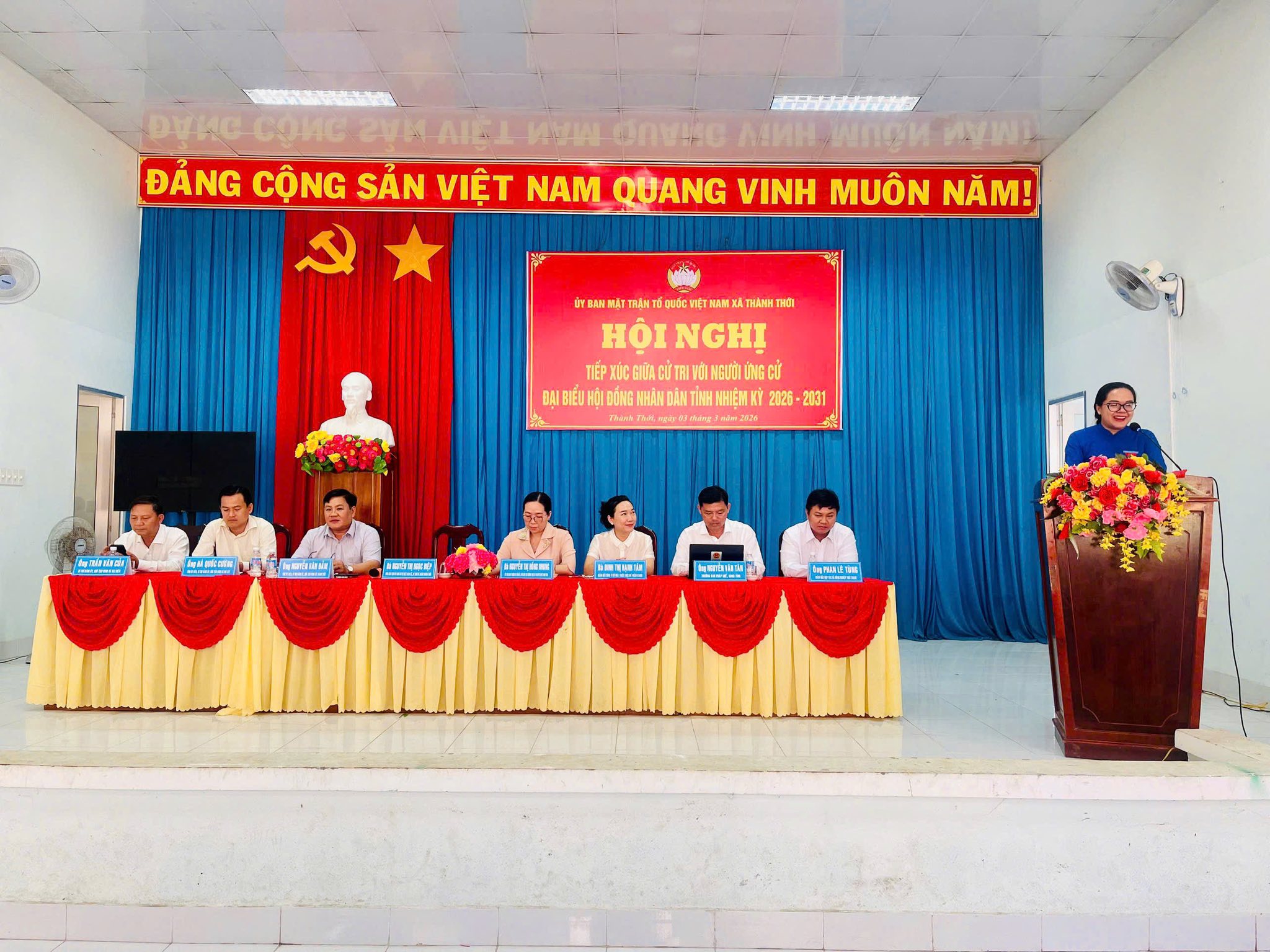 Ngày 03/3/2026, đồng chí Nguyễn Thị Ngọc Điệp – Đảng ủy viên, Phó Chủ tịch thường trực UBMTTQVN đồng thời là Bí thư Đoàn thanh niên xã Thành Thới ứng cử viên ứng cử Hội đồng nhân dân tỉnh do Tỉnh đoàn giới thiệu đã tham gia Hội nghị tiếp xúc cử tri với những người ứng cử Hội đồng nhân dân tỉnh nhiệm kỳ 2026 – 2031 tại xã Thành Thới, xã An Định tỉnh Vĩnh Long.