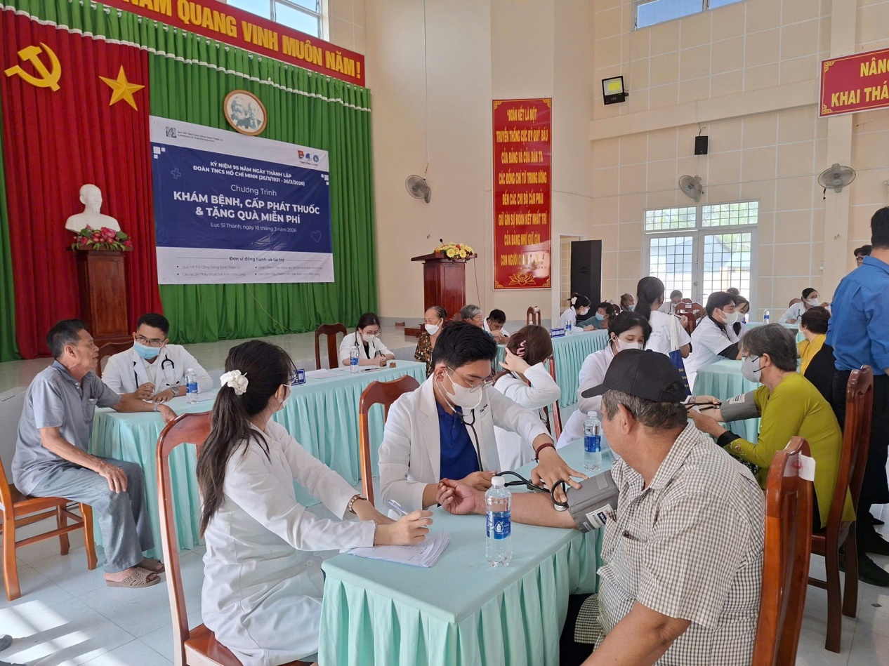Nằm trong chuỗi hoạt động hưởng ứng Tháng Thanh niên năm 2026, hướng tới kỷ niệm 95 năm Ngày thành lập Đoàn TNCS Hồ Chí Minh (26/3/1931 – 26/3/2026) và chào mừng Ngày bầu cử đại biểu Quốc hội khóa XVI, Đại biểu Hội đồng nhân dân các cấp nhiệm kỳ 2026 – 2031. Sáng ngày 10/3/2026, Tỉnh đoàn, Hội LHTN Việt Nam tỉnh phối hợp Quỹ hỗ trợ cộng đồng Đinh Thiện Lý tổ chức chương trình khám bệnh, cấp thuốc miễn phí và tặng quà cho bà con nhân dân trên địa bàn xã Lục Sỹ Thành.
