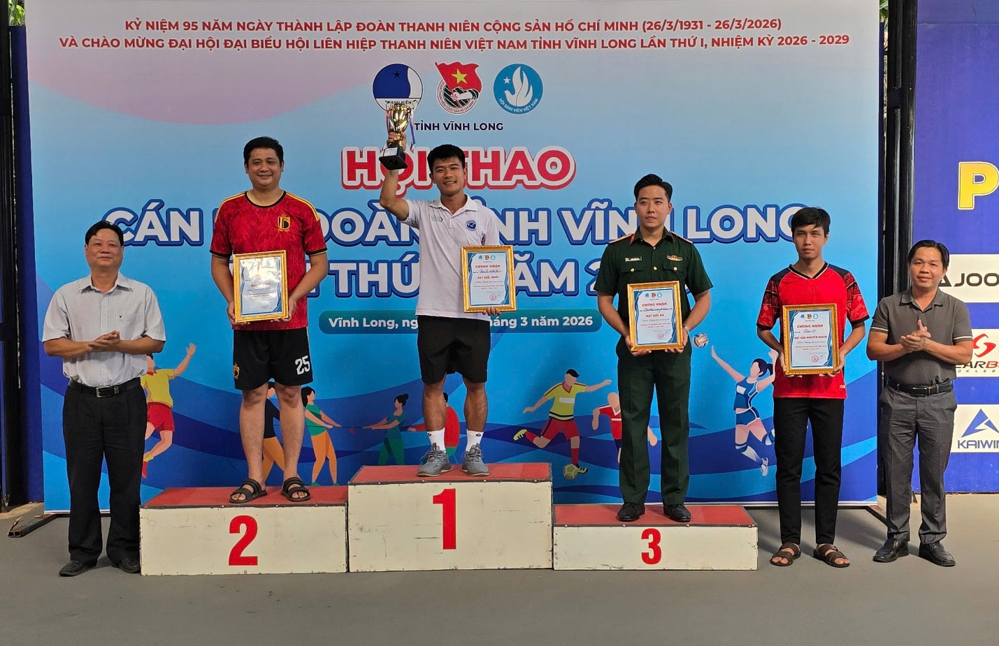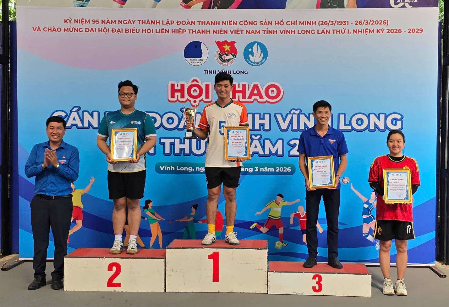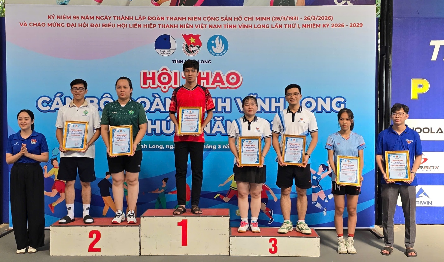 Trong 02 ngày 20 và 21/3/2026, tại Khu liên hợp thể thao Trung Ngọc, Hội thao Cán bộ Đoàn tỉnh Vĩnh Long lần thứ I năm 2026 đã chính thức diễn ra trong không khí sôi nổi, rộn ràng và tràn đầy nhiệt huyết. Đây là hoạt động thiết thực chào mừng kỷ niệm 95 năm Ngày thành lập Đoàn TNCS Hồ Chí Minh (26/3/1931 – 26/3/2026), chào mừng thành công Cuộc bầu cử đại biểu Quốc hội khóa XVI và Hội đồng nhân dân các cấp nhiệm kỳ 2026 – 2031, đồng thời hướng tới chào mừng Đại hội Đại biểu Hội LHTN Việt Nam tỉnh Vĩnh Long lần thứ I, nhiệm kỳ 2026 – 2029.