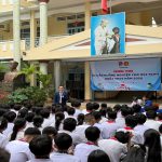 Đồng chí Nguyễn Thanh Nhã – Phó Bí thư Thường trực Tỉnh đoàn, Chủ tịch Hội Liên hiệp Thanh niên Việt Nam tỉnh và đồng chí Đỗ Thanh Sang – Bí thư Chi đoàn Báo và Phát thanh Truyền hình Vĩnh Long lên trao học bổng, tập trắng cho các em học sinh.