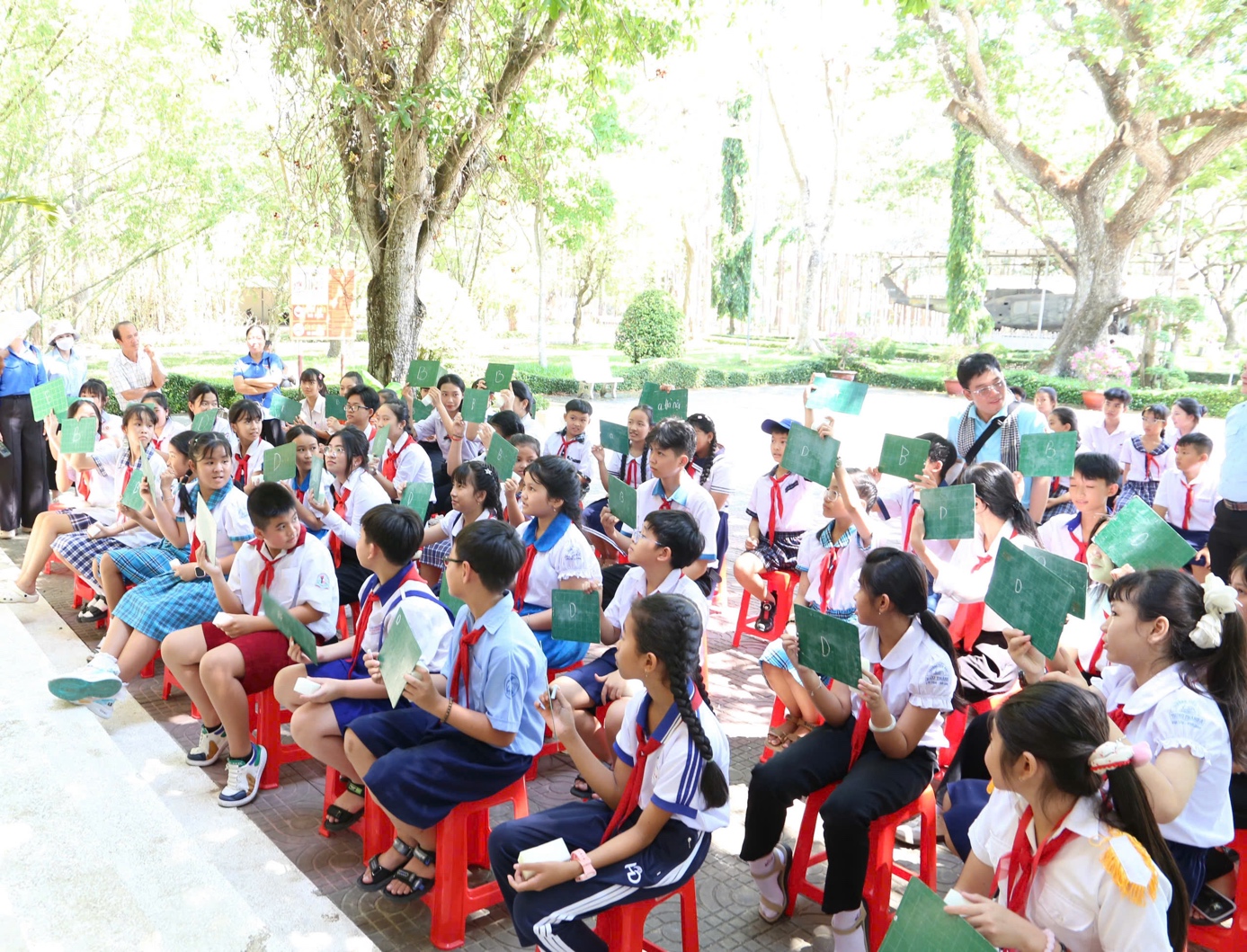 Bên cạnh đó, các em còn tham gia các hoạt động minigame tìm hiểu kiến thức về thân thế, sự nghiệp của Chủ tịch Hồ Chí Minh và lịch sử phong trào Đồng Khởi dựa trên nội dung đã được trải nghiệm; giao lưu với thiếu nhi tại phường Long Đức và xã Đồng Khởi, góp phần tăng cường sự gắn kết, học hỏi lẫn nhau.