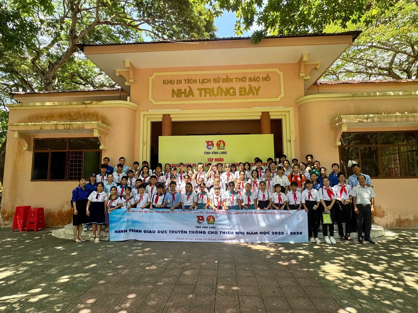 Nằm trong chuỗi hoạt động chào mừng 85 năm Ngày thành lập Đội TNTP Hồ Chí Minh (15/5/1941 – 15/5/2026) và chào mừng kỷ niệm 51 năm Ngày giải phóng miền Nam, thống nhất đất nước (30/4/1975 – 30/4/2026), ngày 24/4/2026, Ban Thường vụ Tỉnh đoàn, Hội đồng Đội tỉnh Vĩnh Long tổ chức Hành trình giáo dục truyền thống cho thiếu nhi năm học 2025 – 2026. Hành trình với chủ đề “Hành trình về nguồn – em yêu quê hương Vĩnh Long”được tổ chức tại Đền Thờ Chủ tịch Hồ Chí Minh (phường Long Đức) và Di tích lịch sử Đồng Khởi Bến Tre (xã Đồng Khởi).
