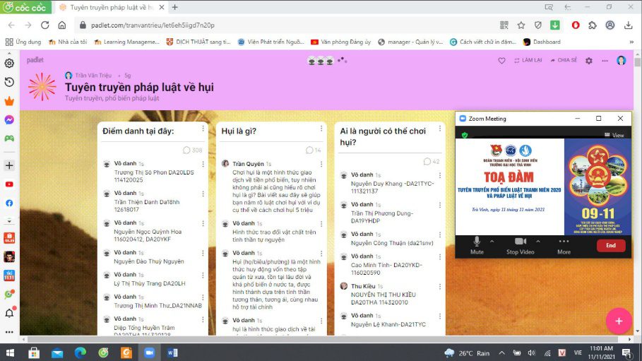 Đoàn trường Đại học Trà Vinh: Hoạt động tuyên truyền, phổ biến luật thanh niên năm 2020 và pháp luật về hụi của đoàn trường cho cán bộ, đoàn viên thanh niên trường đại học Trà Vinh 19/11/2021