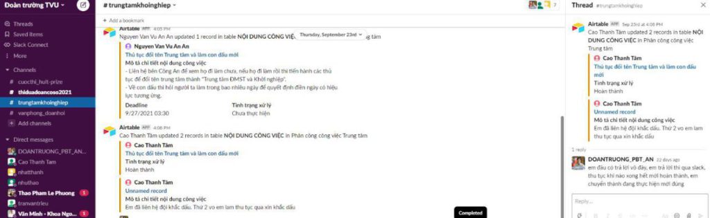 Đoàn trường ĐHTV: Áp dụng sáng tạo công cụ Slack trong việc theo dõi tiến độ công việc tự động 18/10/2021