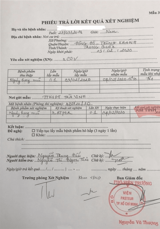 Bé 2 tuổi người Trung Quốc ở Cầu Ngang đã có kết quả xét nghiệm âm tính với virus corona (nCoV) 05/02/2020