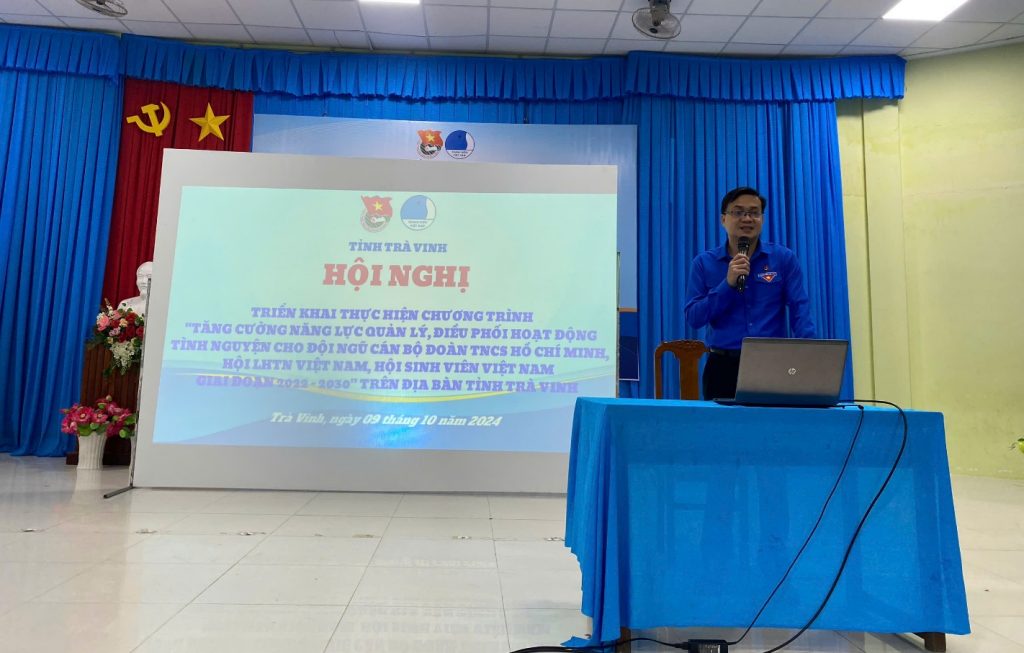 TRIỂN KHAI KẾ HOẠCH THỰC HIỆN CHƯƠNG TRÌNH “TĂNG CƯỜNG NĂNG LỰC QUẢN LÝ, ĐIỀU PHỐI HOẠT ĐỘNG TÌNH NGUYỆN CHO ĐỘI NGŨ CÁN BỘ ĐOÀN TNCS HỒ CHÍ MINH, HỘI LHTN VIỆT NAM, HỘI SINH VIÊN VIỆT NAM GIAI ĐOẠN 2022 – 2030” TRÊN ĐỊA BÀN TỈNH TRÀ VINH 10/10/2024