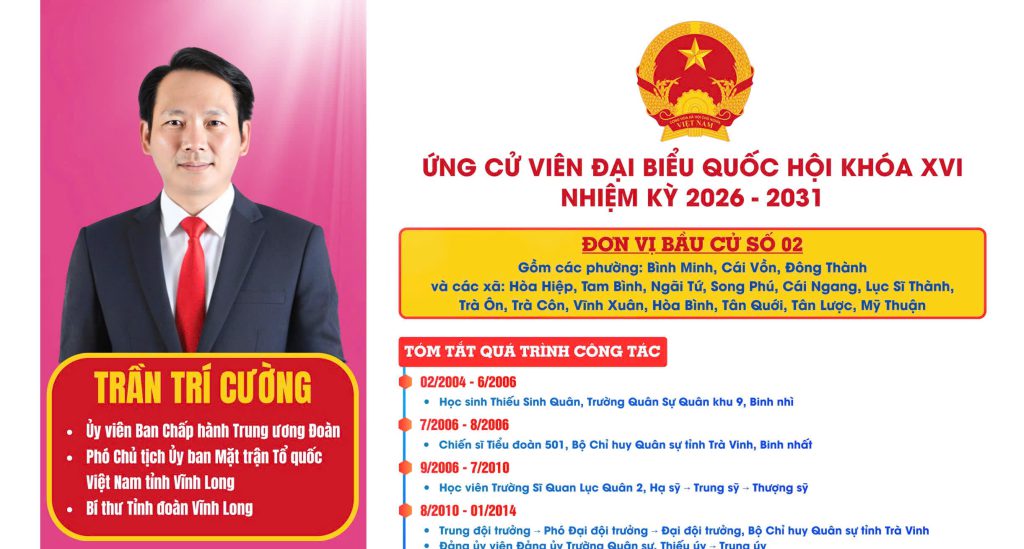 Thông tin các ứng cử viên ứng cử Hội đồng Nhân dân tỉnh Vĩnh Long nhiệm kỳ 2026 – 2031 thuộc Tỉnh đoàn Vĩnh Long và do Tỉnh đoàn Vĩnh Long giới thiệu ứng cử 07/03/2026